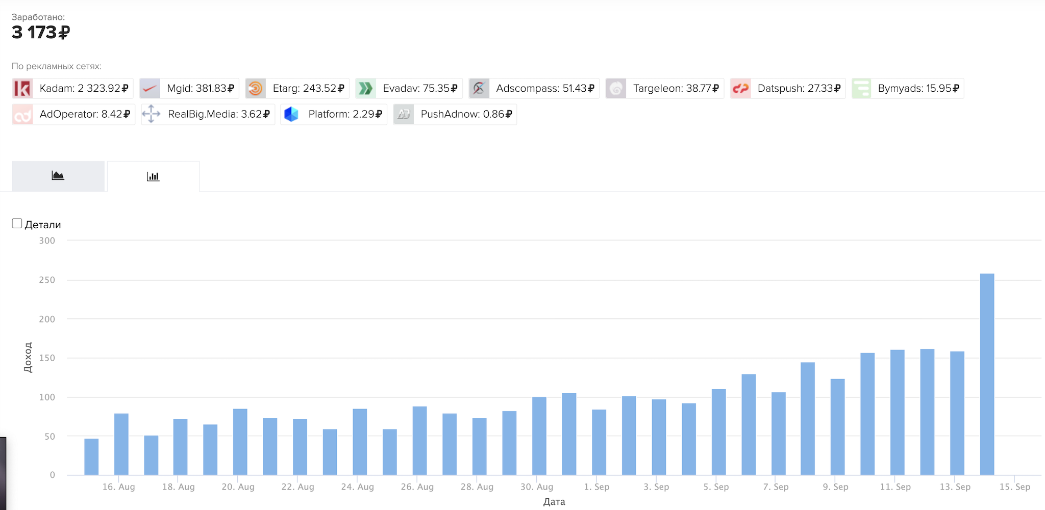 Сайт продаю после летних каникул, поэтому прибыль СИЛЬНО ЗАНИЖЕНА!!! Тем более, что указывается средняя прибыль за последние 2 месяца. Впереди целый учебный год - прибыль будет только расти.