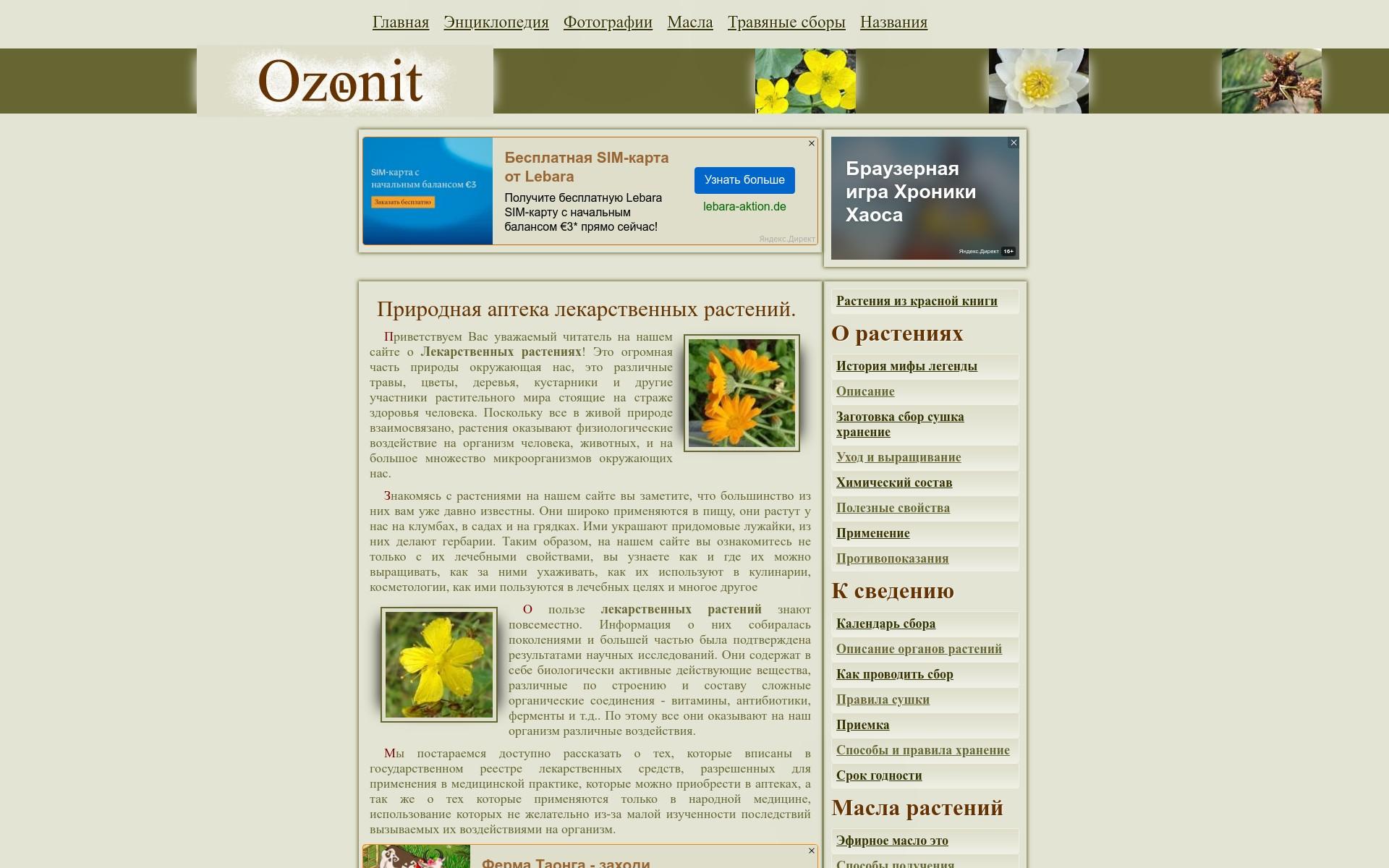 Сайт о лекарственных растениях. Делался под пассивный доход.