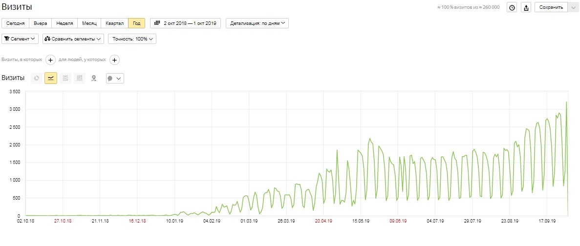Несмотря на большую посещаемость, трафик распределяется равномерно. Что бывает очень редко и позволяет не волноваться, в случае если одна страница опустится в поиске на пару пунктов.