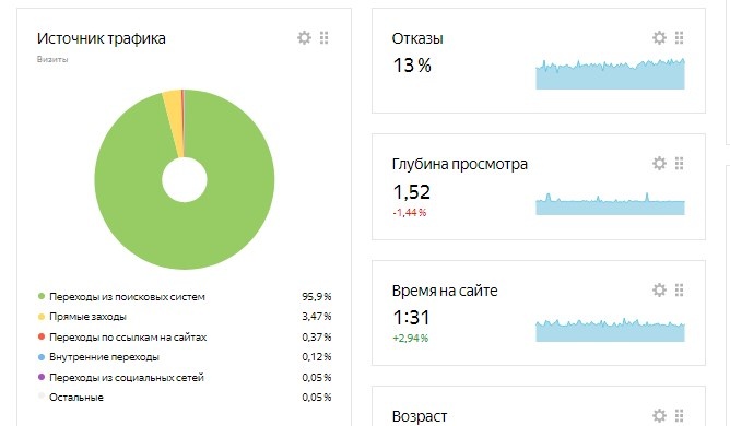 Основной акцент сделан на контенте. Хотя его и немного, имеет место позитивное соотношение количества статей к посещаемости. Удвоить посещаемость проекта реально за короткий промежуток времени в два-три месяца, что увеличит прибыль. Большинство ключей находятся на топовых позициях выдачи.