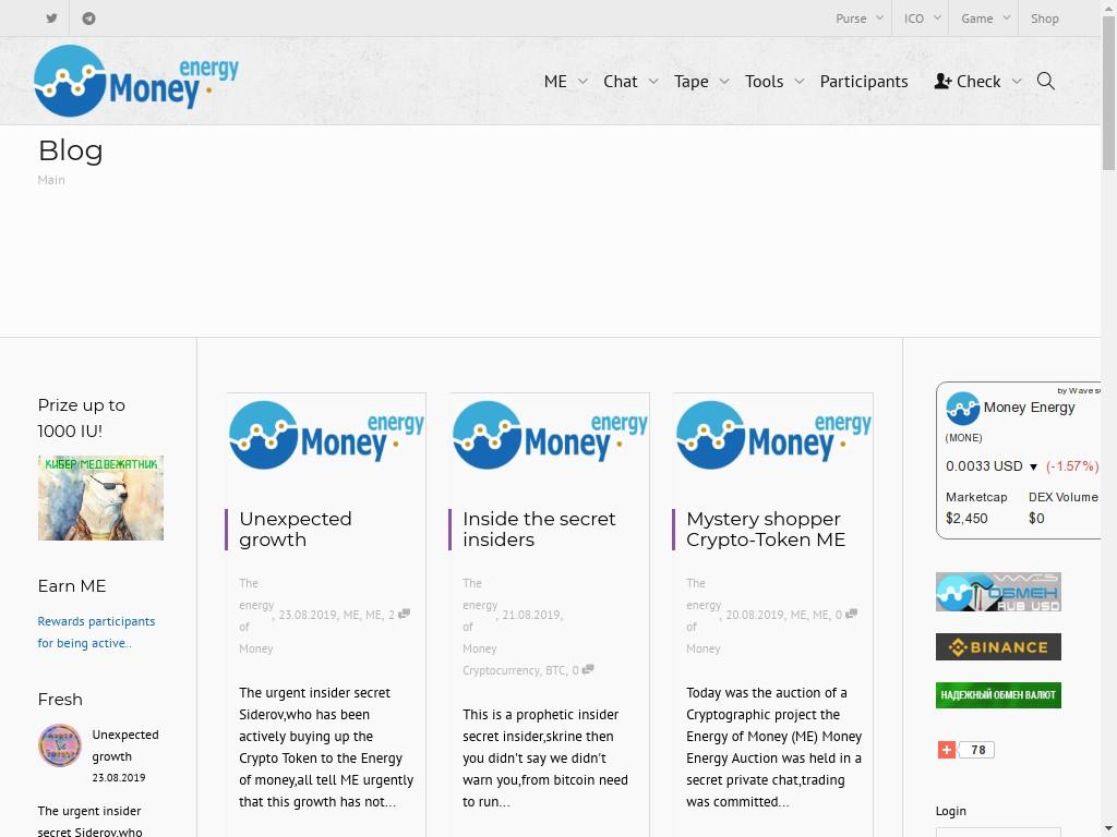 ME токен – внутренняя обменная единица сайта, обеспеченная энергией участников Сообщества Money Energy (далее – Сообщество). Стоимость ME определяется спросом и предложением. ME можно купить или продать на криптовалютной бирже либо заработать активностью на сайте, затратив свою энергию. Также ME можно и потерять из-за неправильной направленности энергии участника – например получить штраф за спам. Чем больше энергии участник Сообщества затрачивает – тем выше баланс ME.