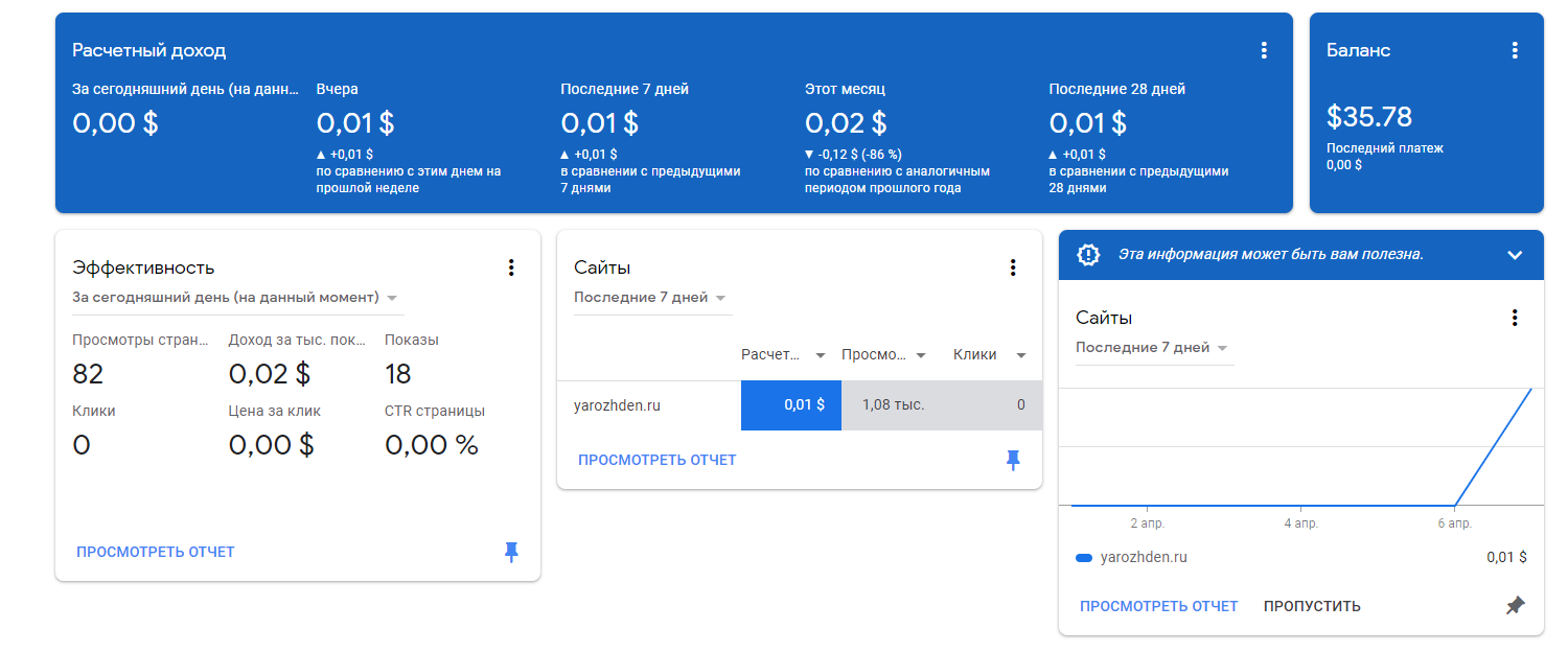 Рекламная сеть яндекса так же подключена. в день приносит 3-5 руб.