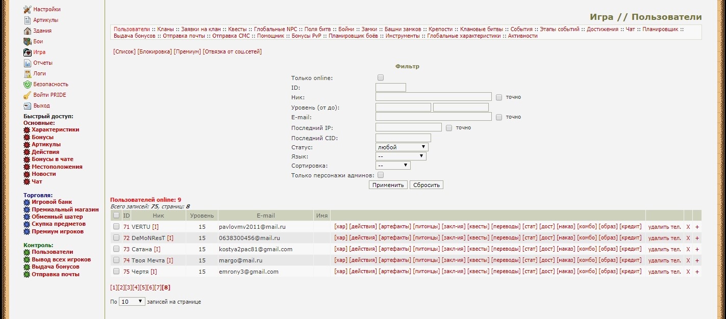 Доброго времени суток. Продается браузерная онлайн MMORPG игра. Игра полностью настроена на 15 уровень игроков. Монстры, вещи, ездовые - все готово чтобы принять игроков и начинать зарабатывать. Данный сервер создал для продажи. Свой личный ( такой же) работает в хорошем ритме, онлайн в районе 150-200 игроков. Доход ежемесячно - 150 000 - 200 000 руб. Все зависит от того, как будете мотивировать игроков. За 2 дня зарегистрировалось более 70 человек при простой созданной группе и без рекламы. Скриншот ниже. Ниже 500 000 не продам!