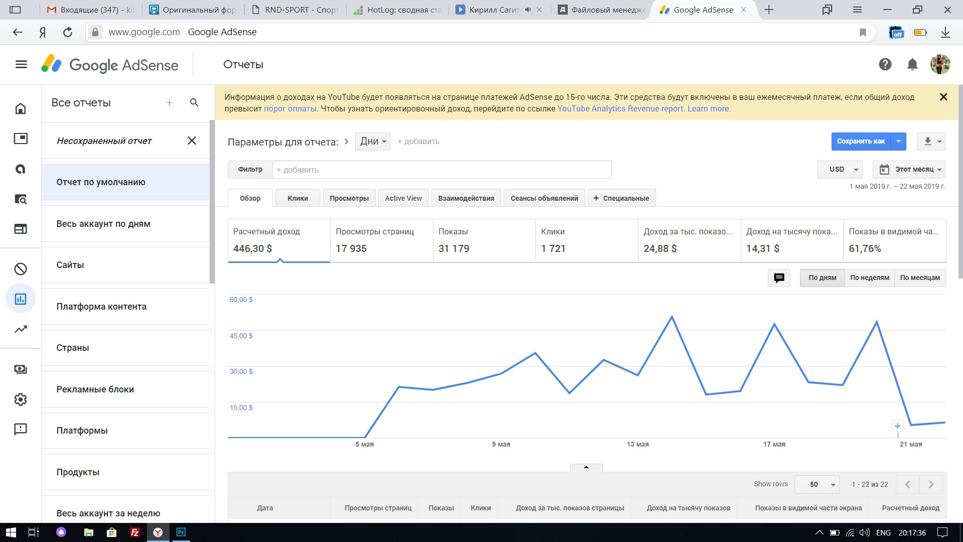 На данный момент доход идёт только с Google Adsense, в день доходило максимально до 40 с лишним долларов. Выводы на аккаунте были, получаю доход с него 5 месяцев. По вашему желанию после покупки сможете подключить РСЯ или любую другую систему монетизации (банов нет), возможно найдете и другие способы заработать на данном сайте.