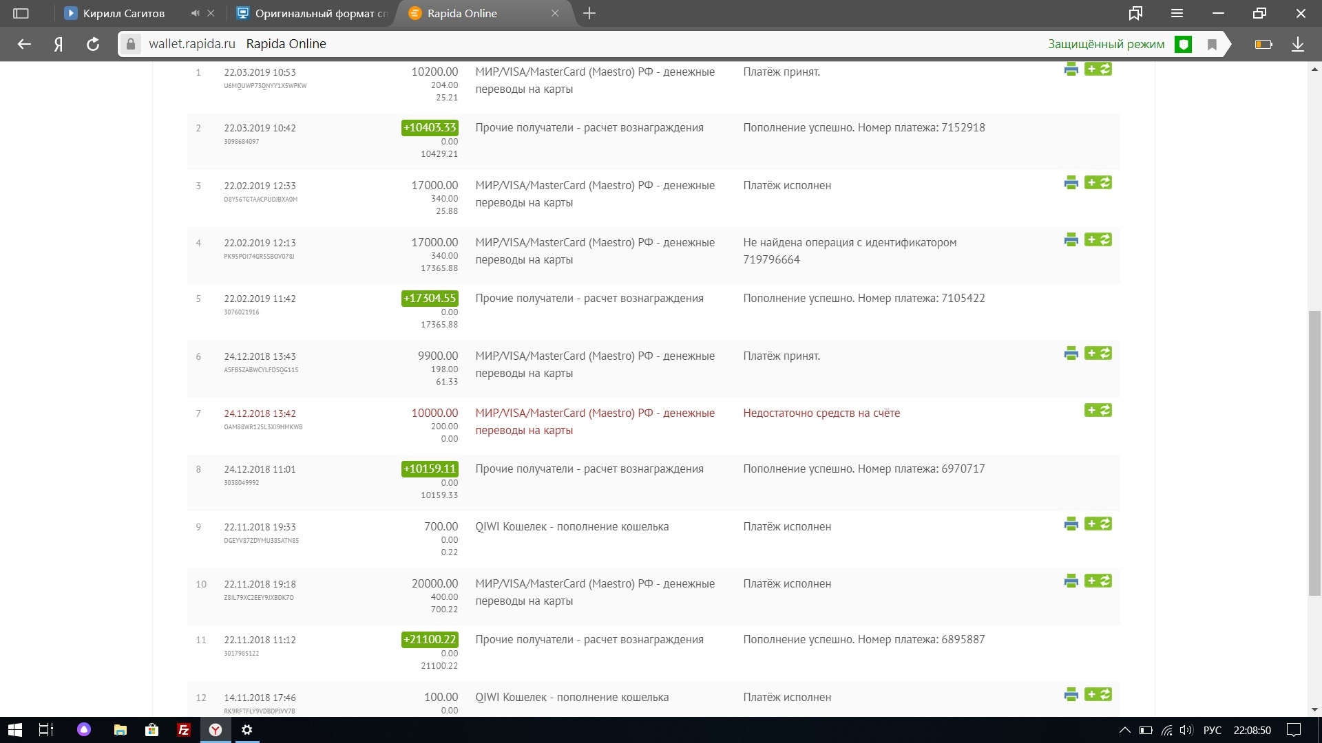 Готов предоставить историю выводов из рапиды (добавил скриншот).