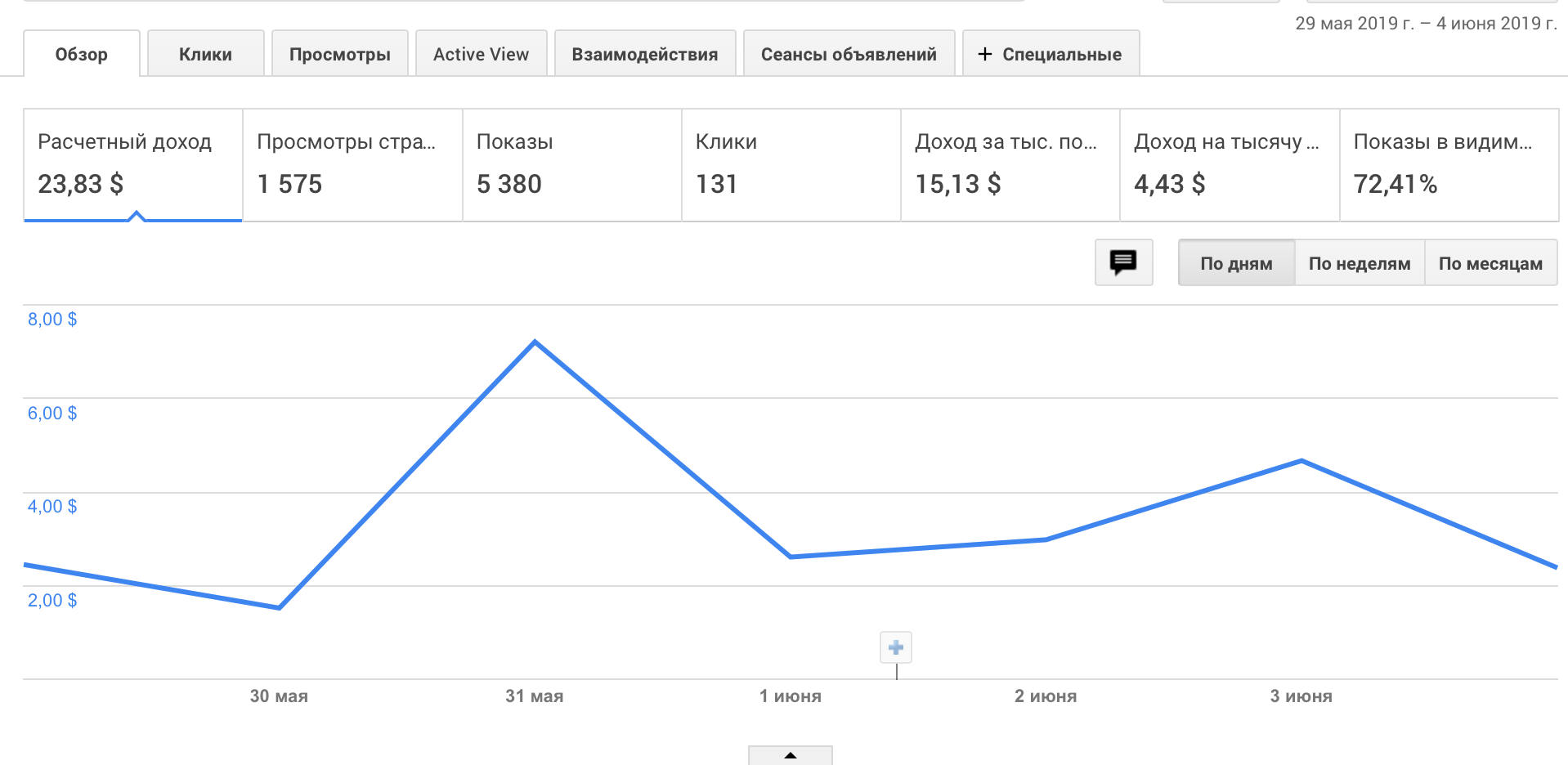 Сайт монетизируется только 12 дней, поэтому доход делится на два последних месяца.