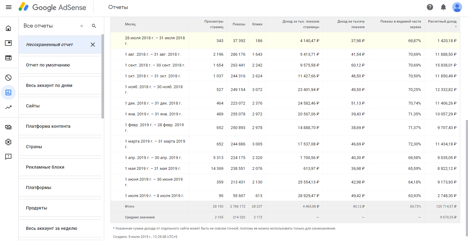Всего с июля 2018 по июнь 2019 сайт заработал 122000 рублей. (Скрины приложил)