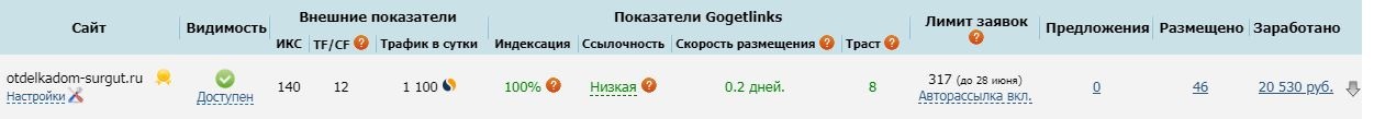 Выполнена грамотная ручная перелинковка, для дальнейших линков и упрощения работы с мирой и ГГЛ установлен платный плагин для текстовой перелинковки – линкатор. Сайт по уму оптимизирован, делала все для себя, рассчитывала развивать его долго и успешно.