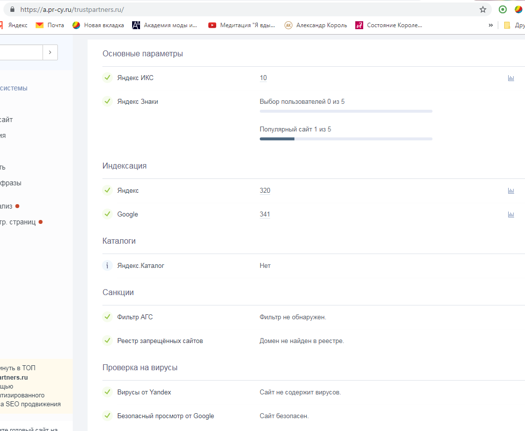Санкции поисковых систем:Нет