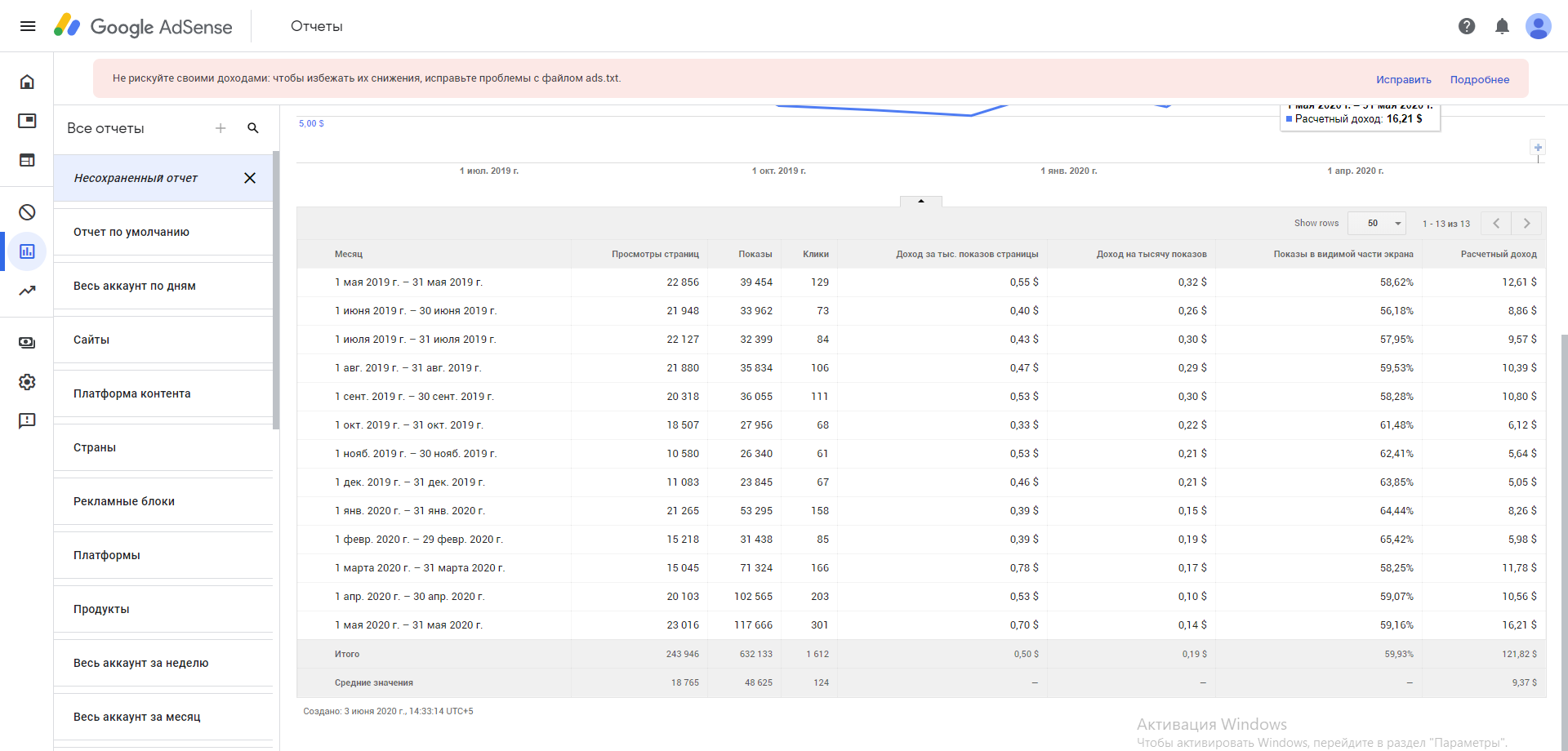 Среднемесячный доход