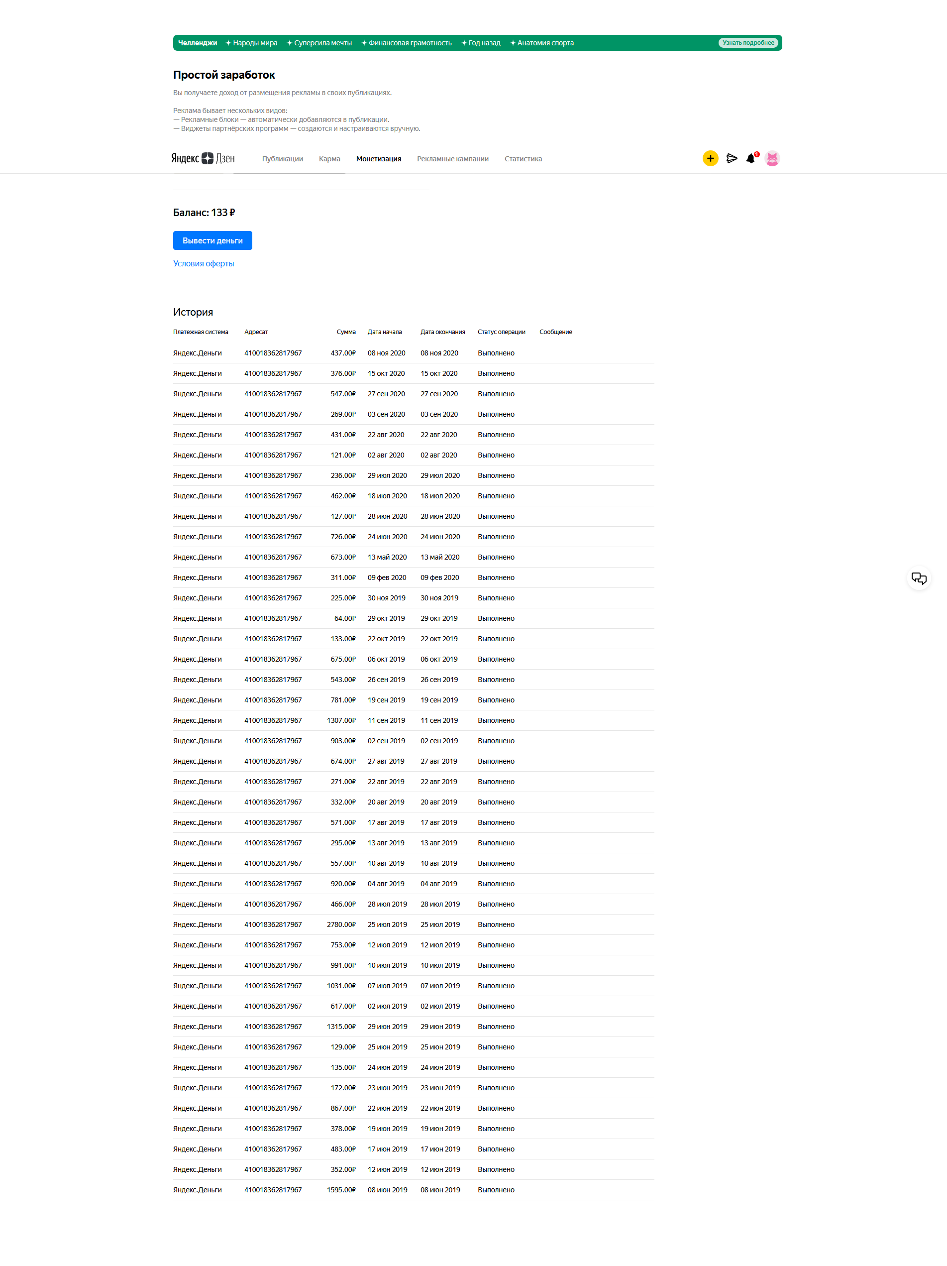 Имеется 75000 бонусных показов на канале дзен