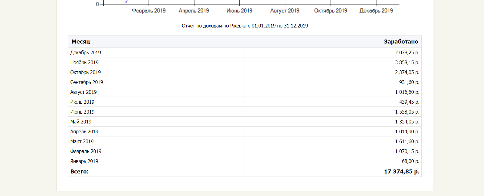 Доход на данный момент в среднем за 1 месяц около 12000 рублей. Я придерживаюсь политики цена сайта= окупаемость за год. Я делаю не большую новогоднюю скидку и оптимальная цена = 10 месяцев окупаемости или 120к рублей.
