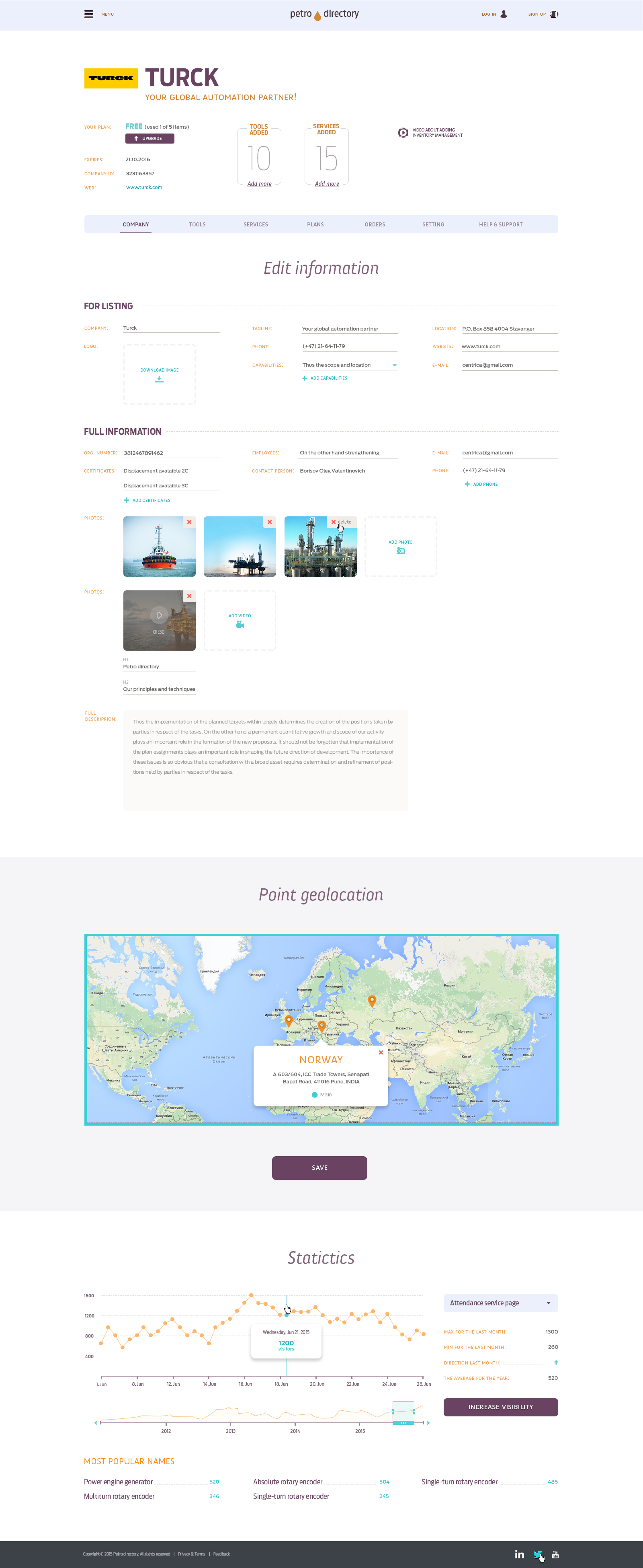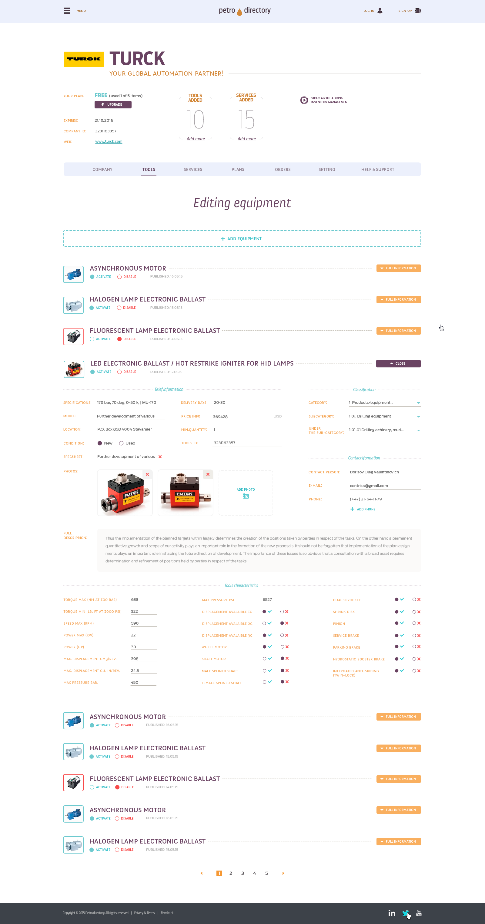 Международная B2B платформа для листинга нефтегазового оборудования и сервисов. Кастомная сборка (свой дизайн и функционал).