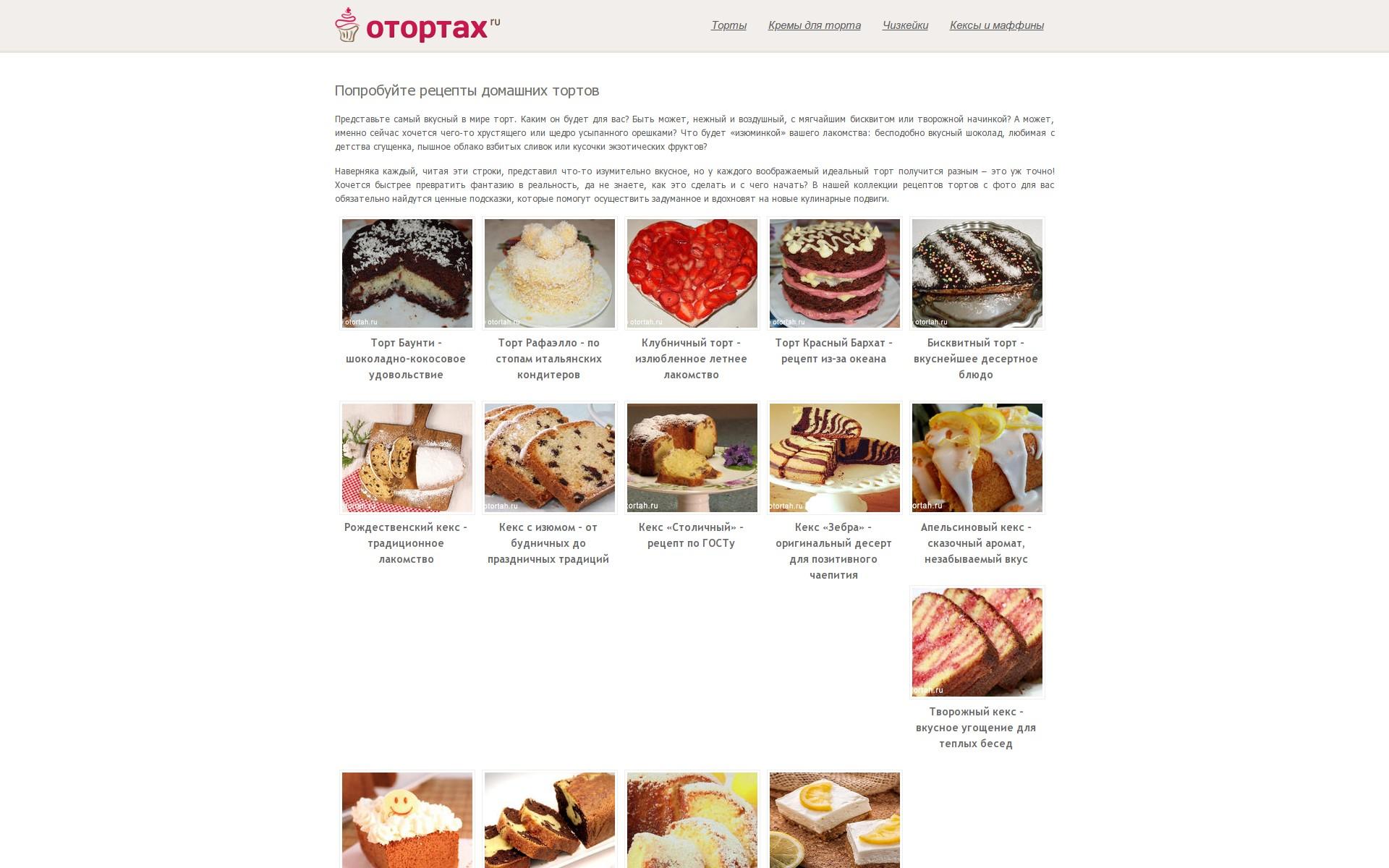 Ароматные кексы на любой вкус, аппетитные чизкейки, популярные и оригинальные домашние торты – легкие рецепты десертов на любой вкус на сайте otortah.ru.