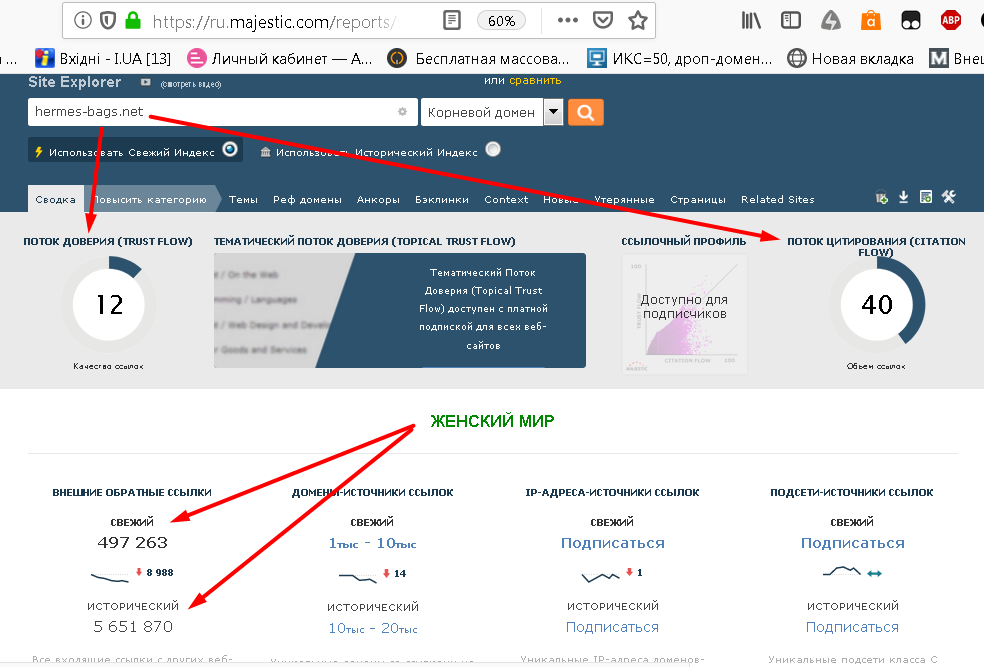 Сильный ссылочный профиль у сайта = по majestic.com: