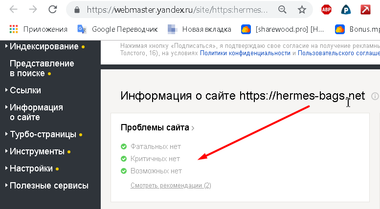 Установлен SSL-сертификат - что прибавляет Траст сайту.