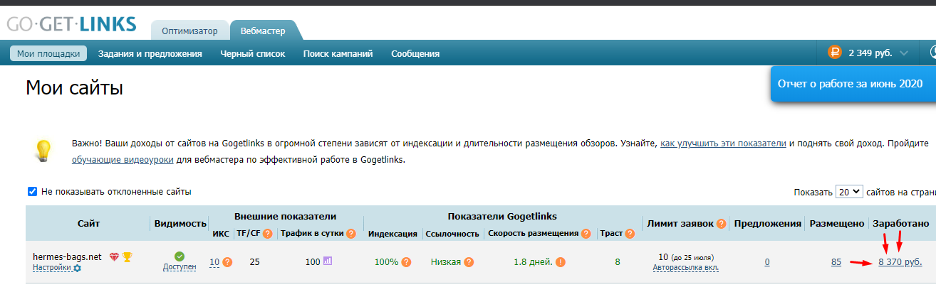 Заработок идет с бирж ссылок https://gogetlinks.net/ + https://www.miralinks.ru/ + https://collaborator.pro + прямая реклама!
