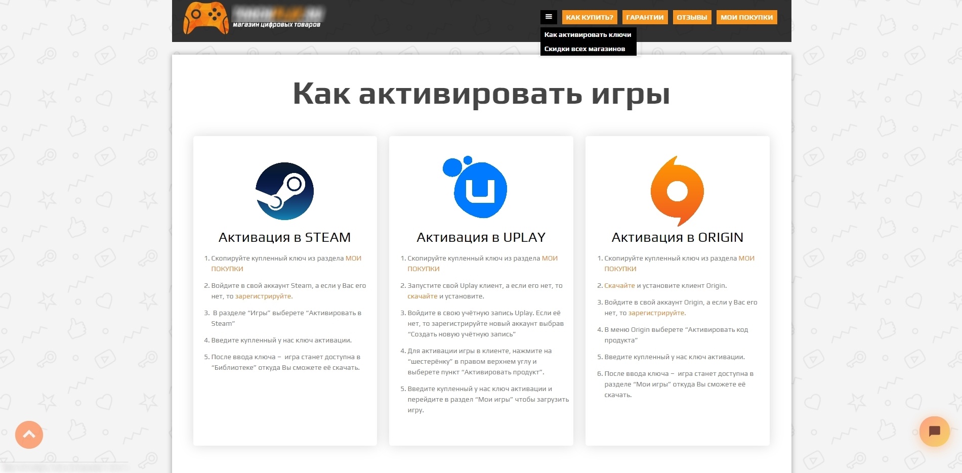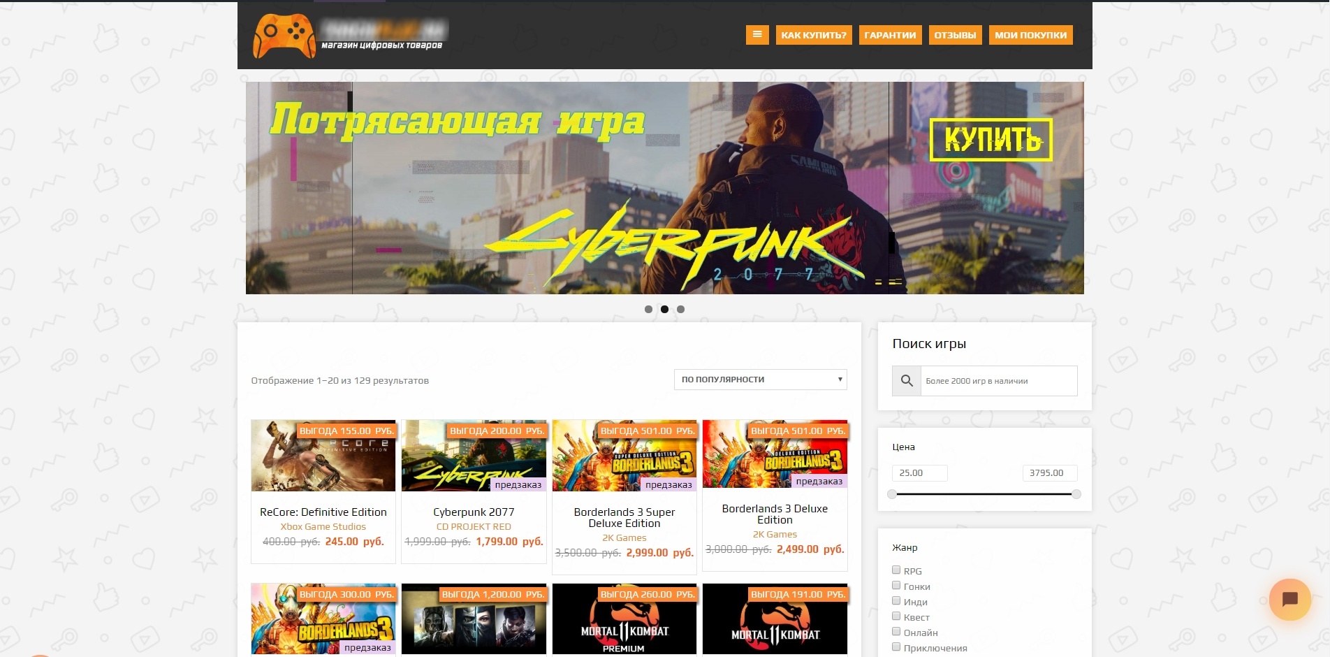 Настроенный интернет-магазин по продаже лицензионных ключей для игр через Ваши партнёрские ссылки.