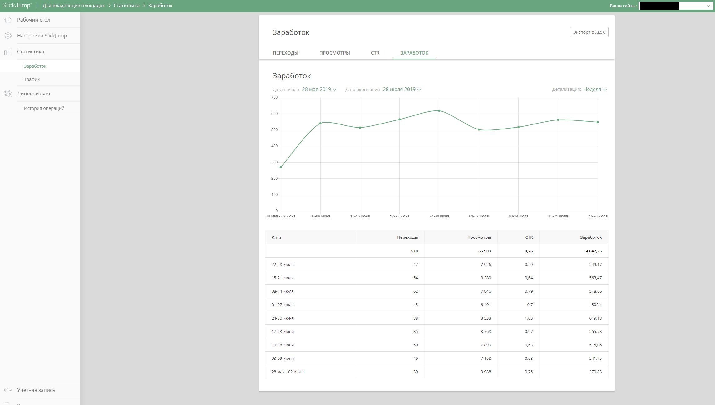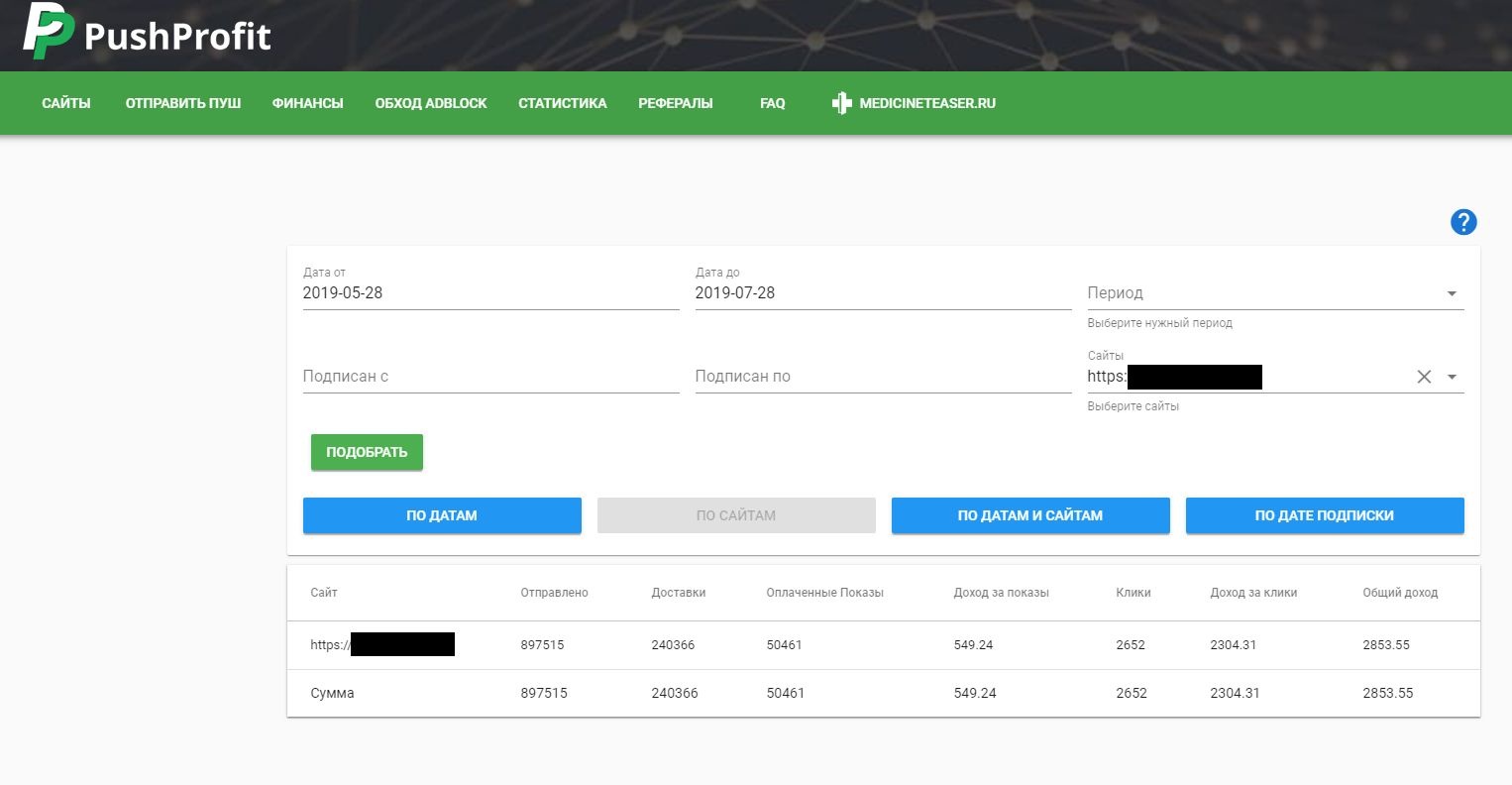 Доход РСЯ + Adsense + slickjump + пушпрофит.