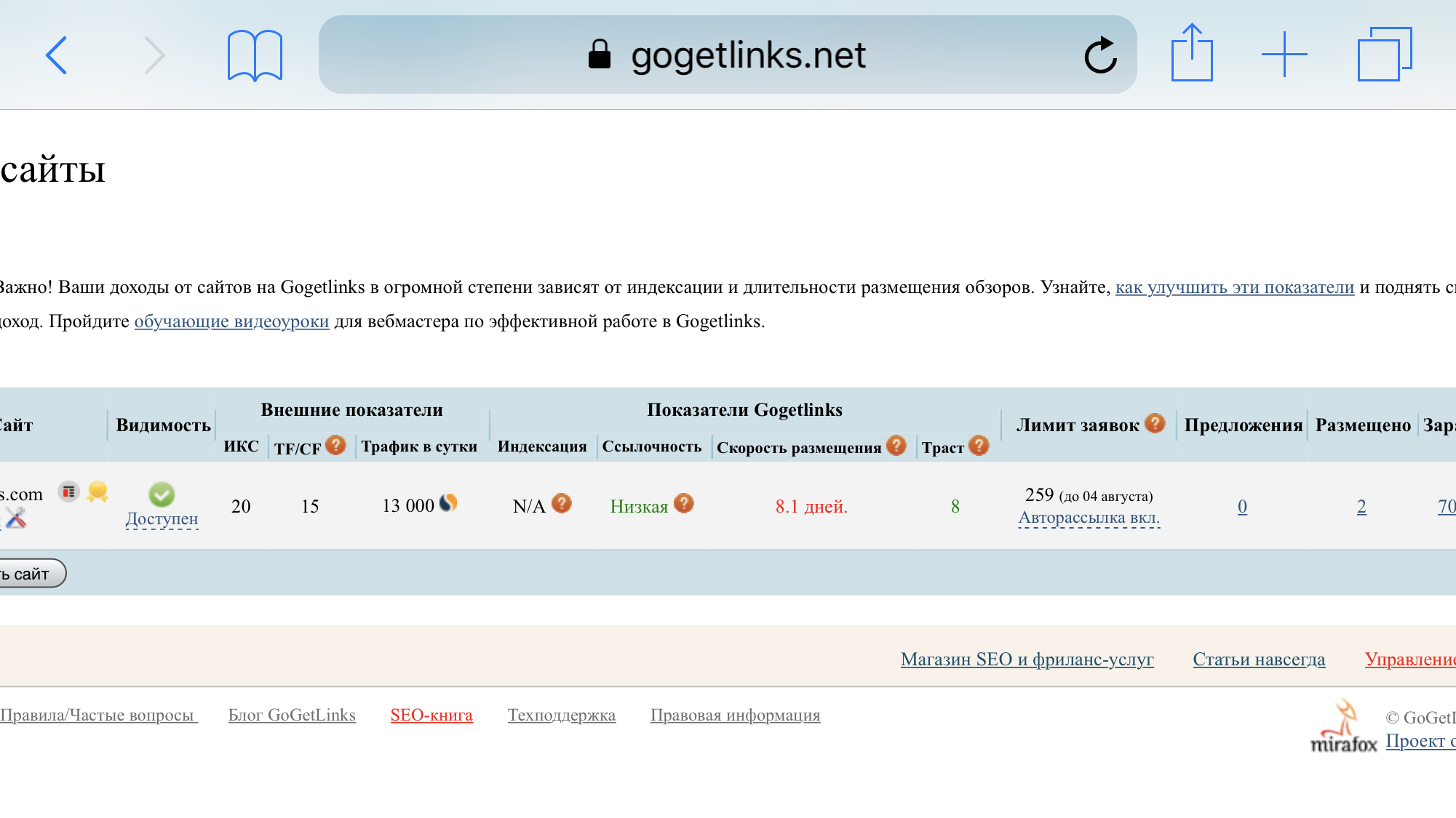 весь доход с контекста, сайт присутствует в трастлинке и гогетлинксе, за 3 месяца я не продал там ни одной ссылки, хотя цену установил выше рыночной и заявки поступали постоянно