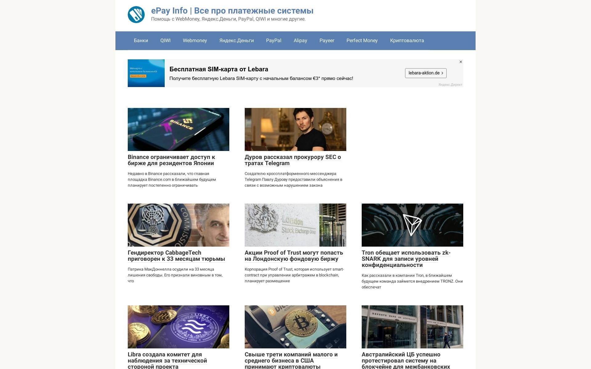 Старый сайт о финансах (электронные платежные системы/банки/проч.)