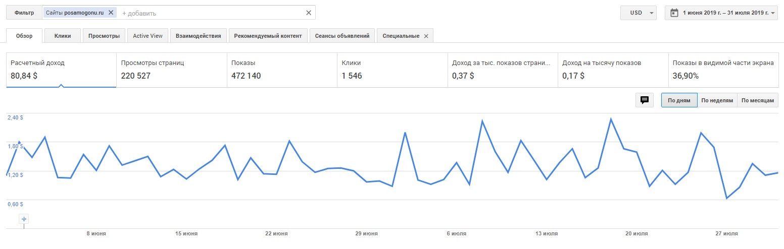 Хорошие показатели по доходности на уника, за июль 117 рублей на 1000 визитов, это мало для этой ниши, при подключении дополнительных способов монетизации можно увеличить этот показатель до 250 - 350 рублей.