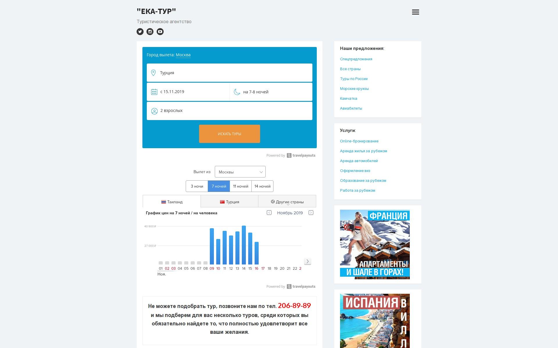 Сайт туристического агентства - "Ека-Тур", действующий c 2010 года, продается в связи с отсутствием деятельности в данном (туристическом направлении). Отлично подойдет тем кто хочет себя в этом интересном Бизнесе