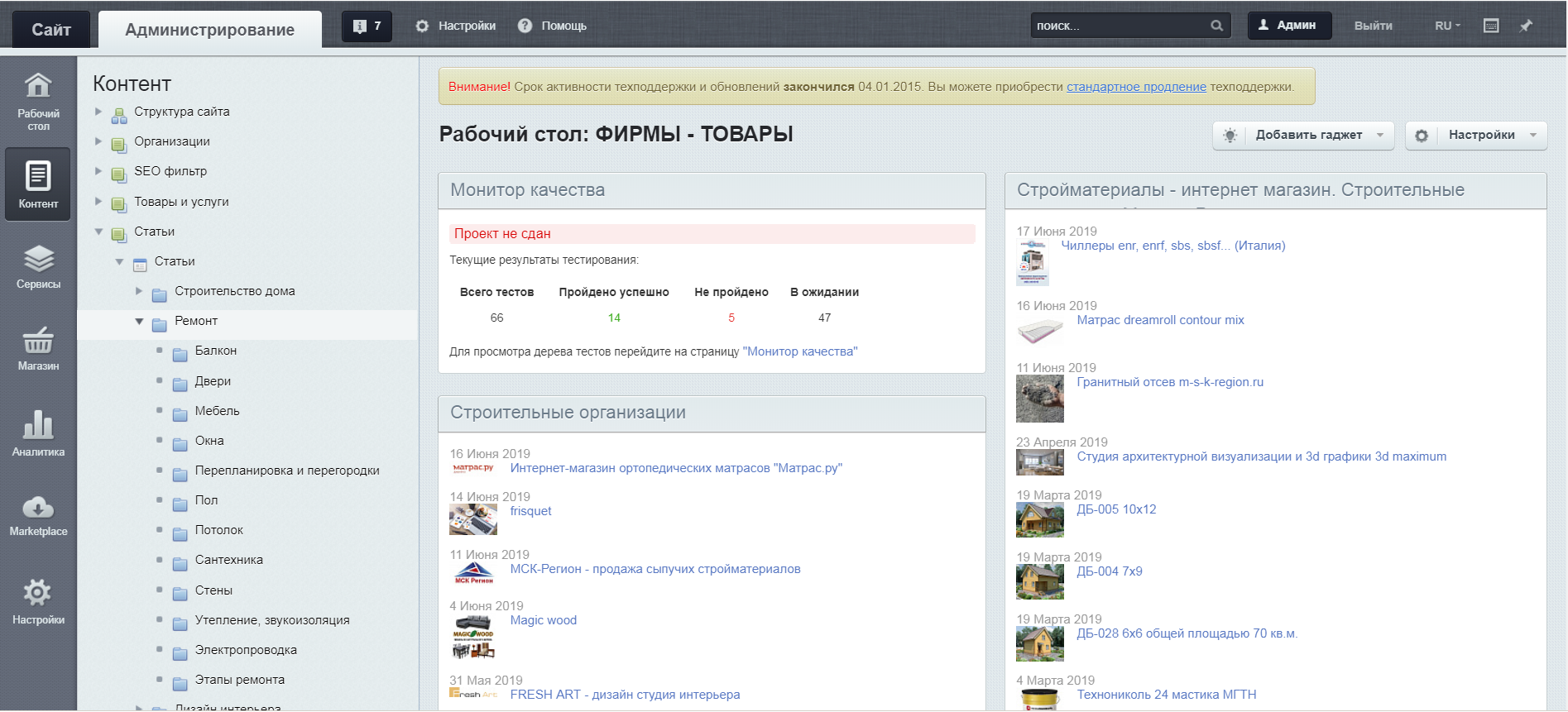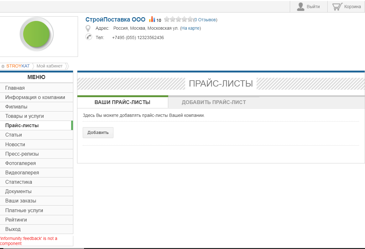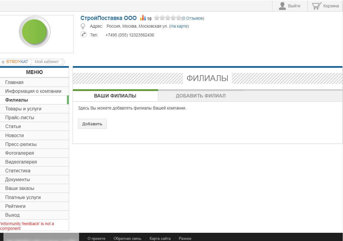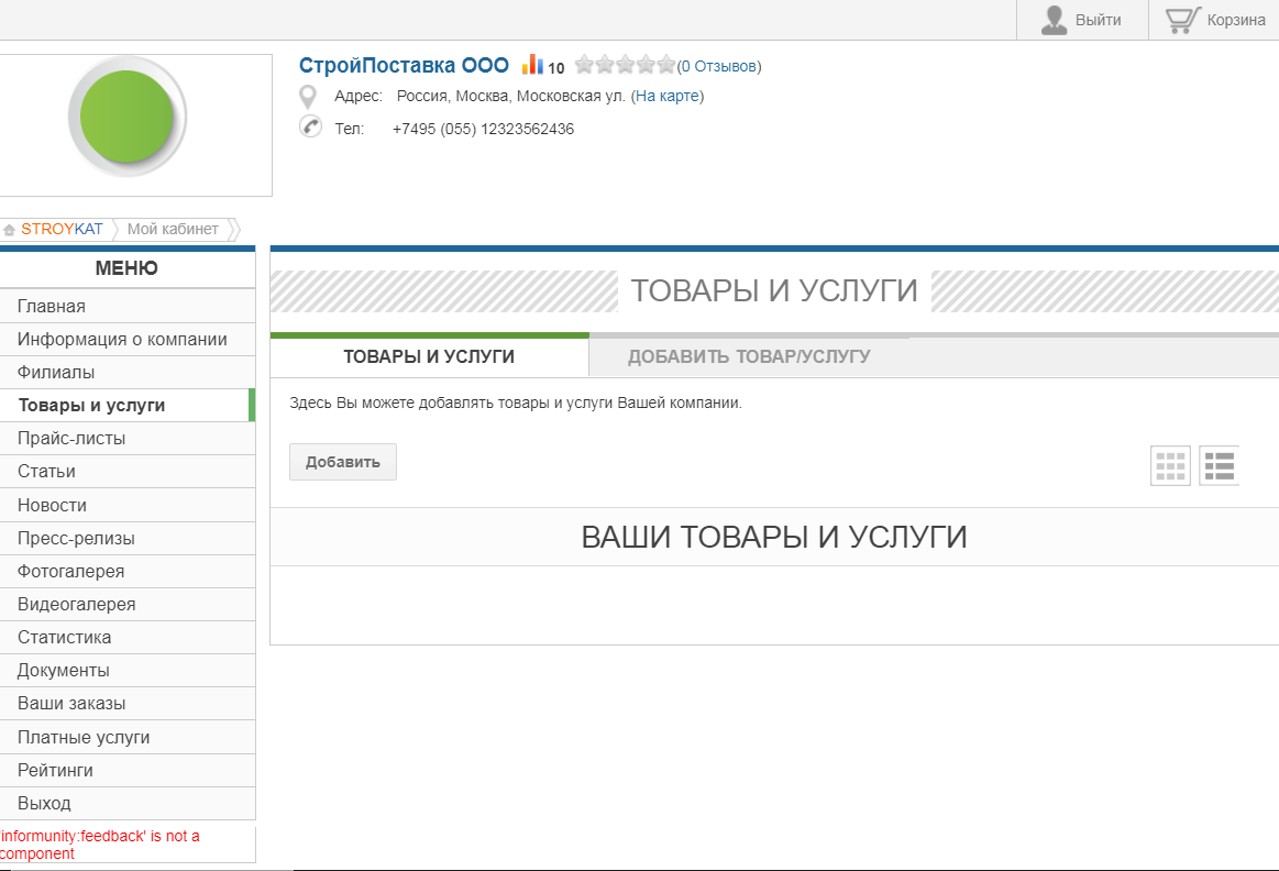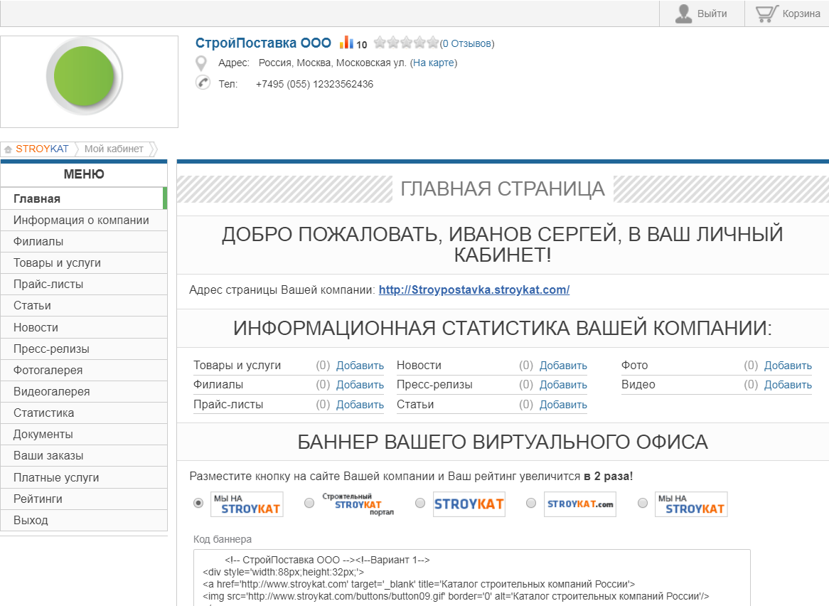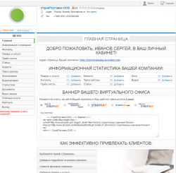 В личном кабинете доступно: оформление общей карточки компании, добавление статей, новостей, пресс-релизов, товаров, услуг, фото, видео.