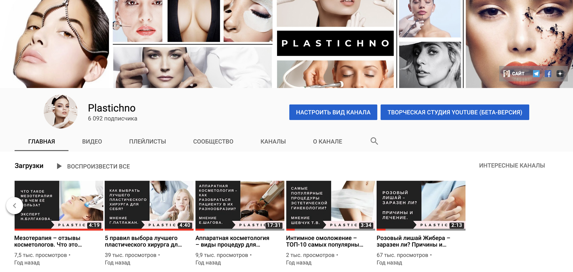 Youtube канал https://youtube.com/plastichno 6100 подписчиков (до 70 тыс просмотров видео, включена монетизация).