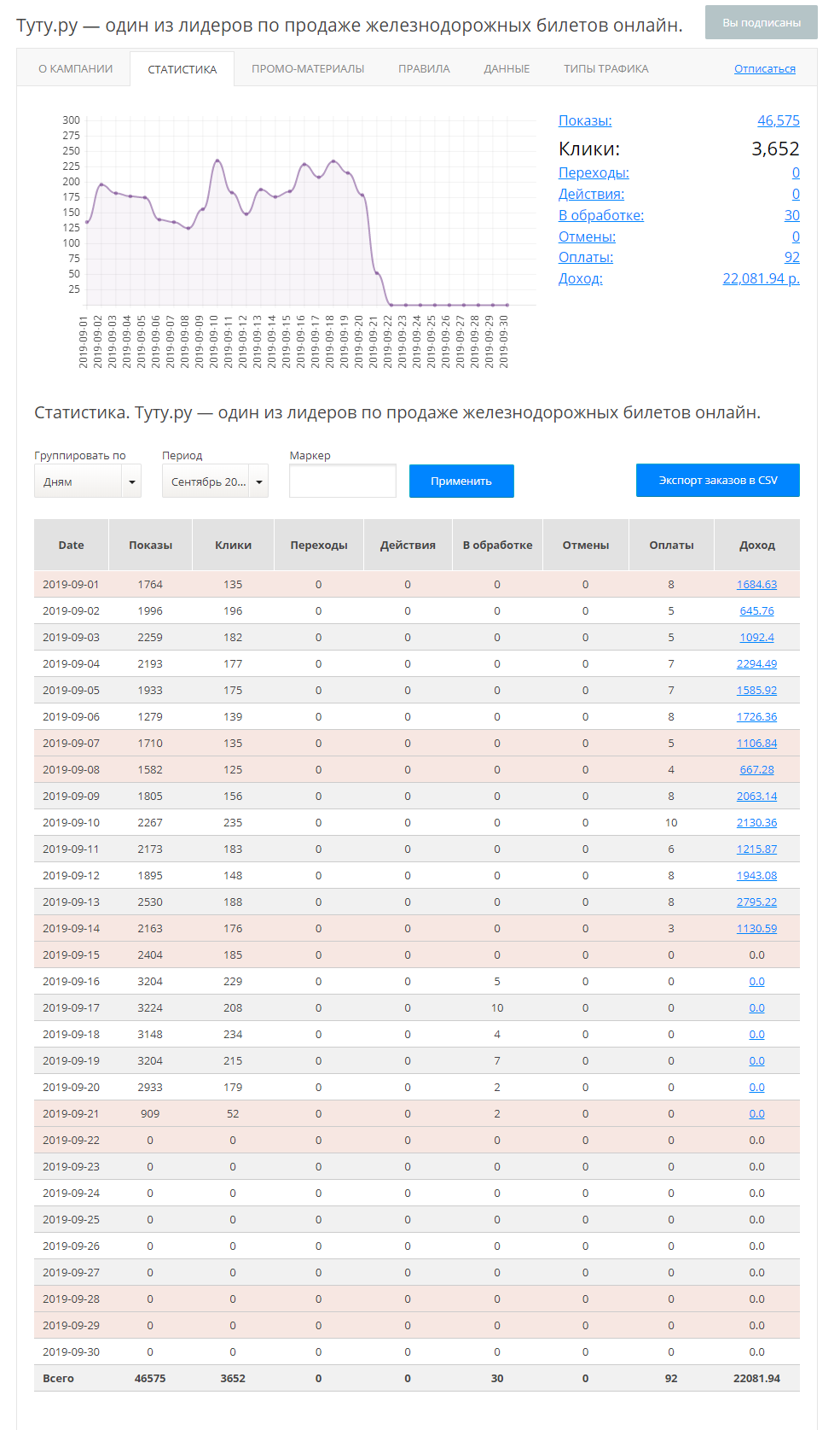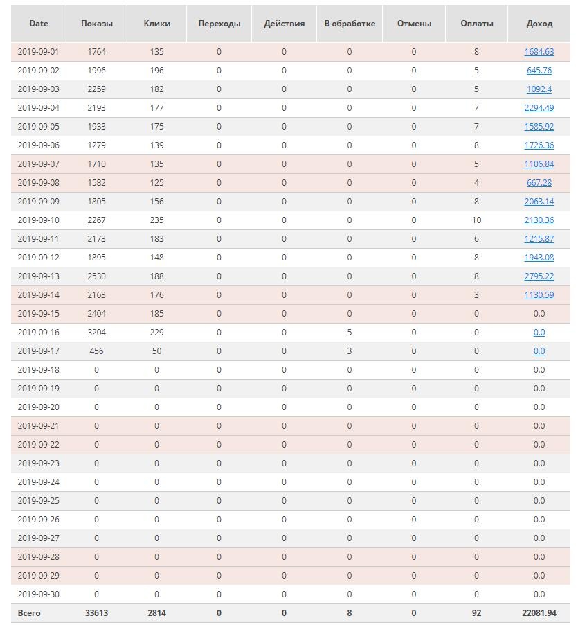 Добавил информацию по доходу за первые 14 дней сентября, он составил 22тр.