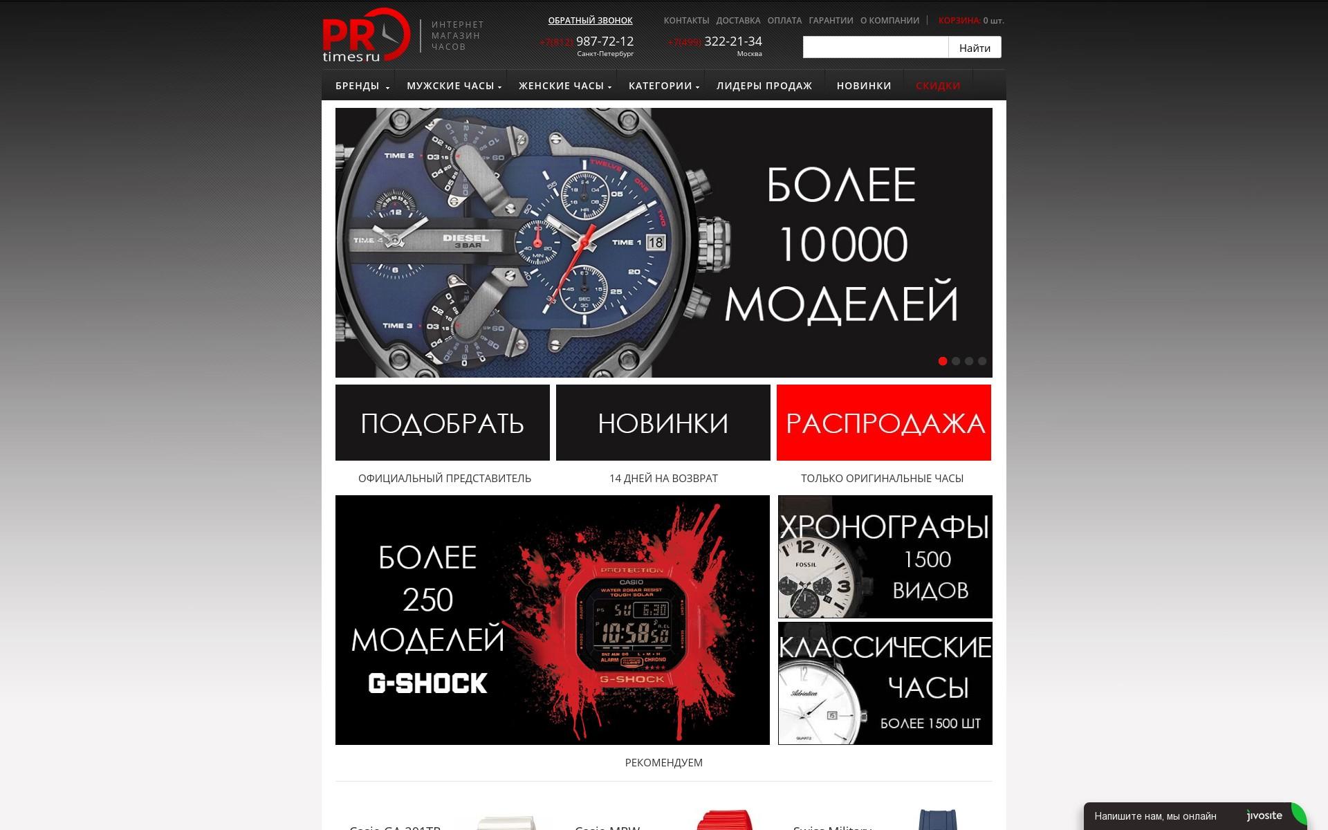 Действующий интернет-магазин оригинальных наручных часов. Настроены парсеры 2 крупных поставщиков наручных часов + парсер часов под нанесение логотипа. Присвоенный регионы в Яндексе: Москва, СПб, Великий Новгород.