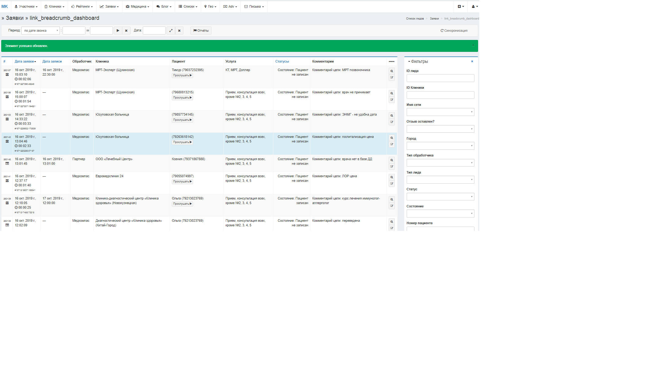 Есть расход на телефонию, чтобы определить в какую клинку были звонки и запись разговоров для подтверждения оплаты, записи пациента (иногда клиники пытаются занизить показатели). Никакие тексты уже не пишутся, не продвигается - проект течет сам по себе.