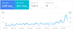 Сайт имеет сезонность. В теплые временна года трафик вырастает в несколько раз. Летом 2020 года трафик достигал 1500 переходов с поиска. С наступление холодов и карантинных ограничений трафик просел до 200 уников/день с поиска.