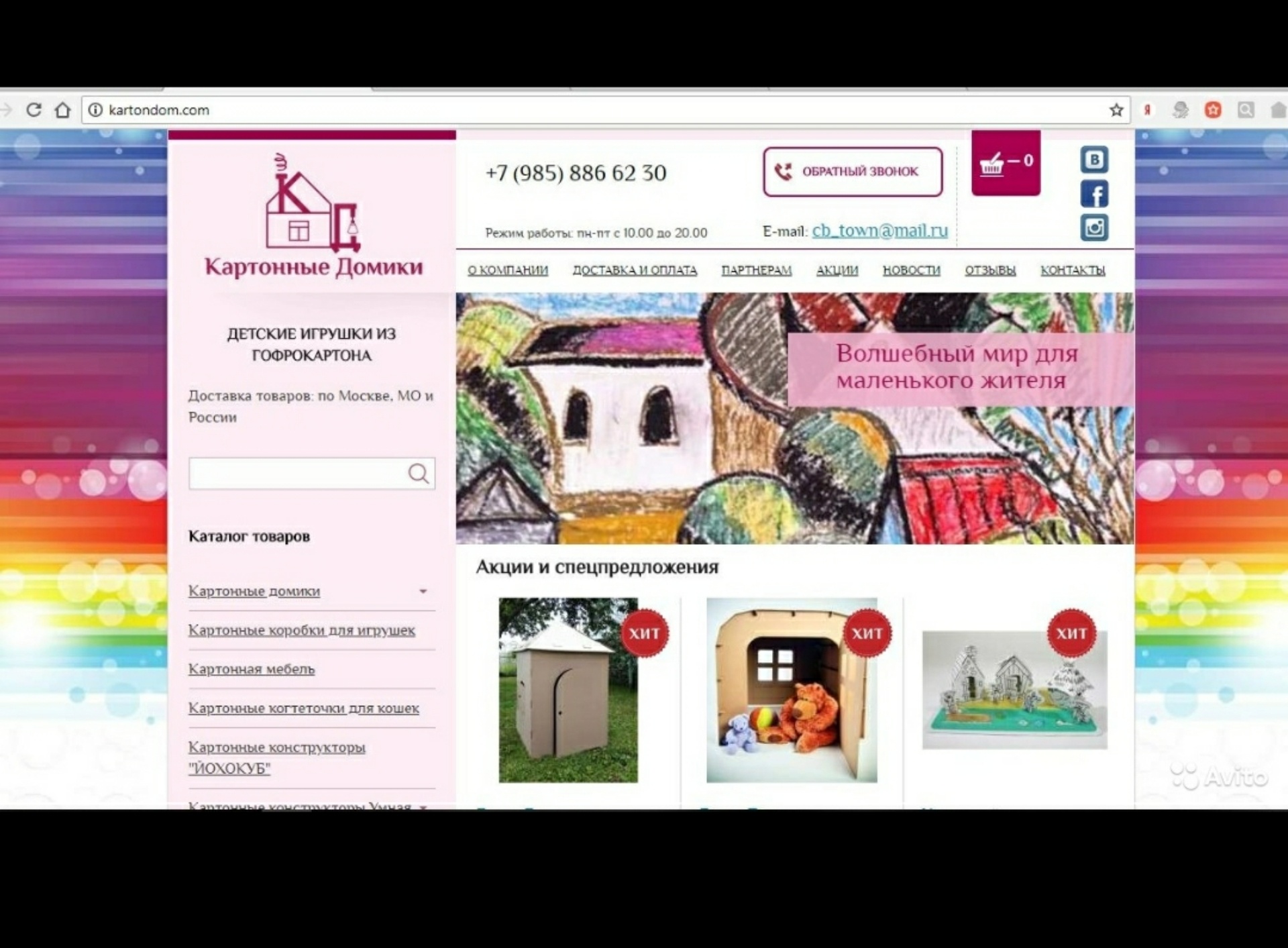 Предлагаем Вашему вниманию интернет-магазин домиков из картона и другой похожей детской продукции, а также изделий из картона для котов (когтеточек). Магазин работает 4 года. Магазин работает стабильно, размещен в социальных сетях, на авито. У магазина оочень хорошая репутация, представлен самый большой выбор от большинства имеющихся производителей этого вида товара. А когтеточки нашего производства составляют хорошую конкуренцию по цене в сравнении с другими производителями. Все отзывы на сайте реальные! Конкурентное преимущество - оперативная доставка, бесплатный самовывоз. Договора заключены с популярной курьерской службой, на сайте подключен онлайн платеж, бизнес чат. Прост в управлении. НЕ для удаленного управления. Легко адаптируется под любой город.