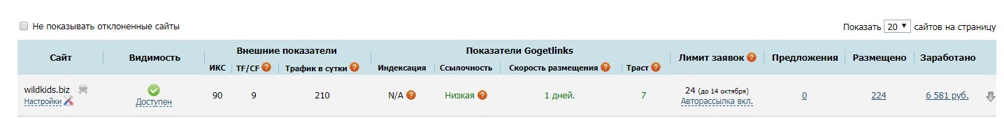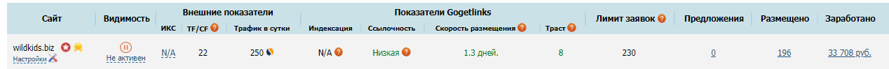 Сайт-статейник для родителей. Добавлен в рекламную сеть Яндекса и во все биржи - гогетлинкс, Rotapost, Miralinks, Вебартекс. Средняя стоимость размещения статьи, на которые приходят заявки 270-290 руб.