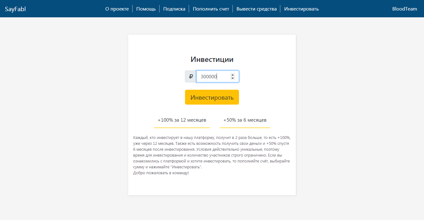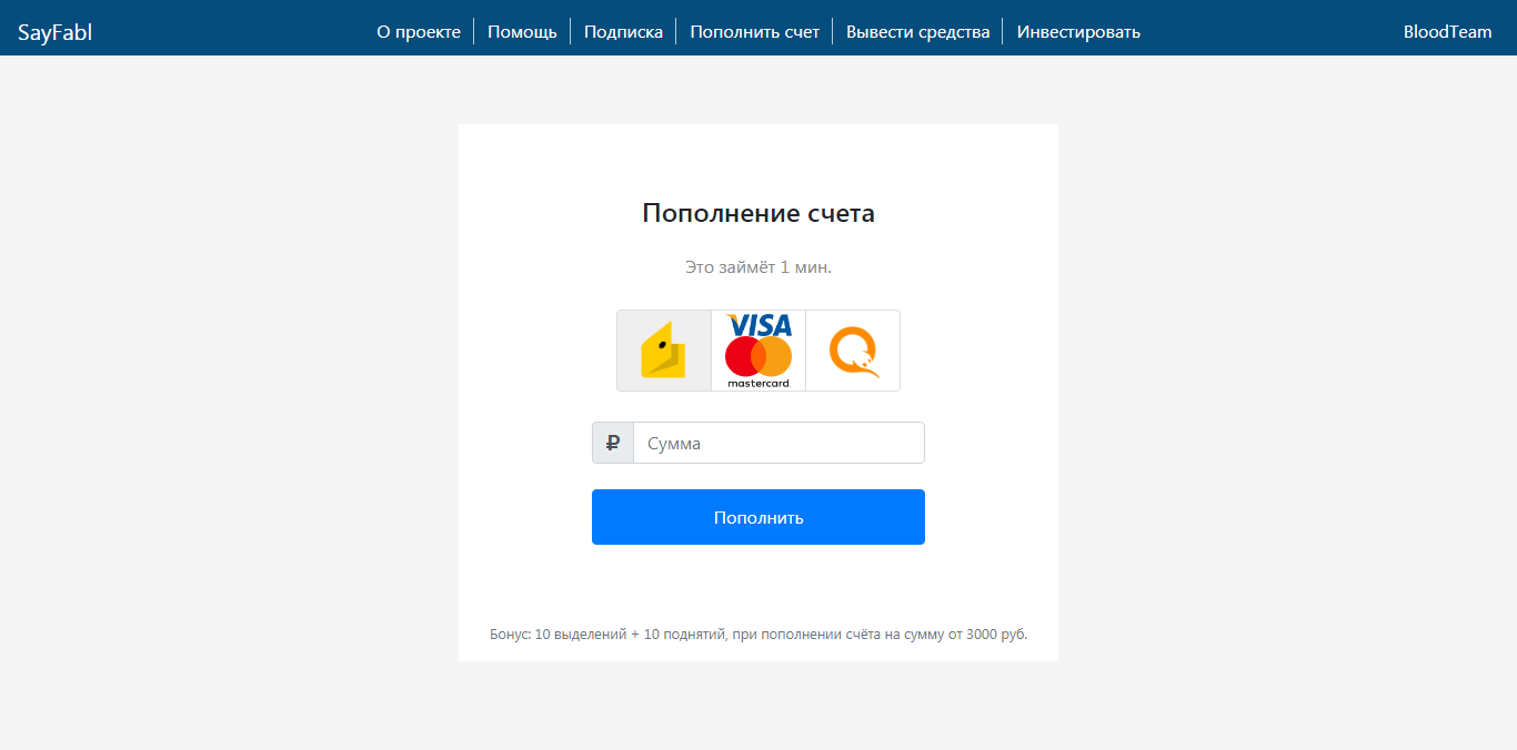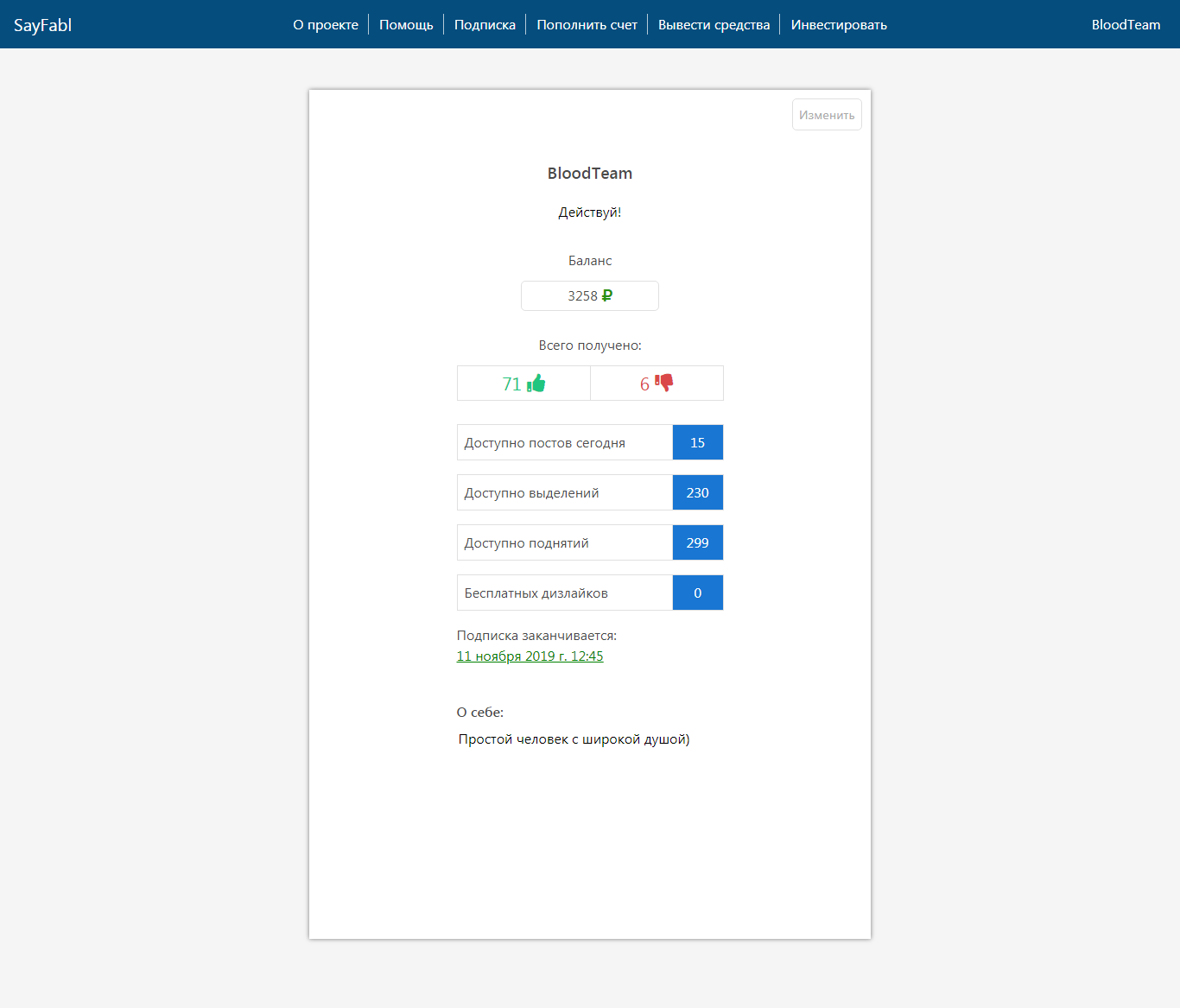 Много времени и сил было вложено в разработку данной интернет платформы. Проект SayFabl.com изначально задумывался как новый вид социальной сети, где люди смогут монетизировать, публикуемый ими контент (фото, видео и т.д.). После запуска нам пришлось приостановить дальнейшее развитие и продвижение платформы по ряду определённых причин, не связанных с бизнесом. Когда все вопросы были улажены нам поступило очень выгодное предложение со стороны и мы приняли решение полностью сфокусироваться на работе над новым проектом (мобильное приложение игровой тематики). Так как у нас нет возможности работать над несколькими проектами одновременно, мы решили продать интернет-платформу SayFabl.com.