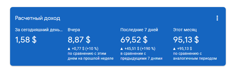 Недавно подключил адсенс, прибыль рекламы от 7$ до 10$ В день! Тут не смог настроить доход правильно. Но сайт реально приносит доход.