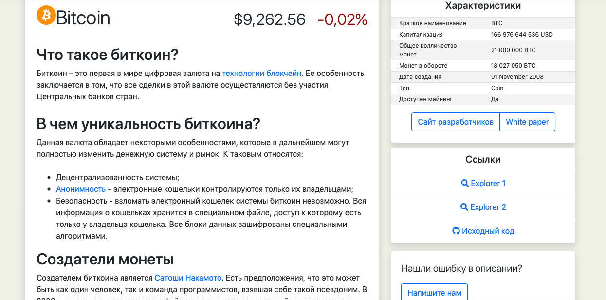 Дополнительная информация:Тематика криптовалют. Разбор токенов, бирж, криптовалют, ICO. Описано доступным языком, понятным даже новичку, вызывает интерес у профессионалов в связи с высоким уровнем информативности. Глубокий разбор проектов по тематике, анализ перспектив и недостатки. Отображение курсов криптовалют в режиме реального времени, налажена синхронизация со сторонним сервисом.