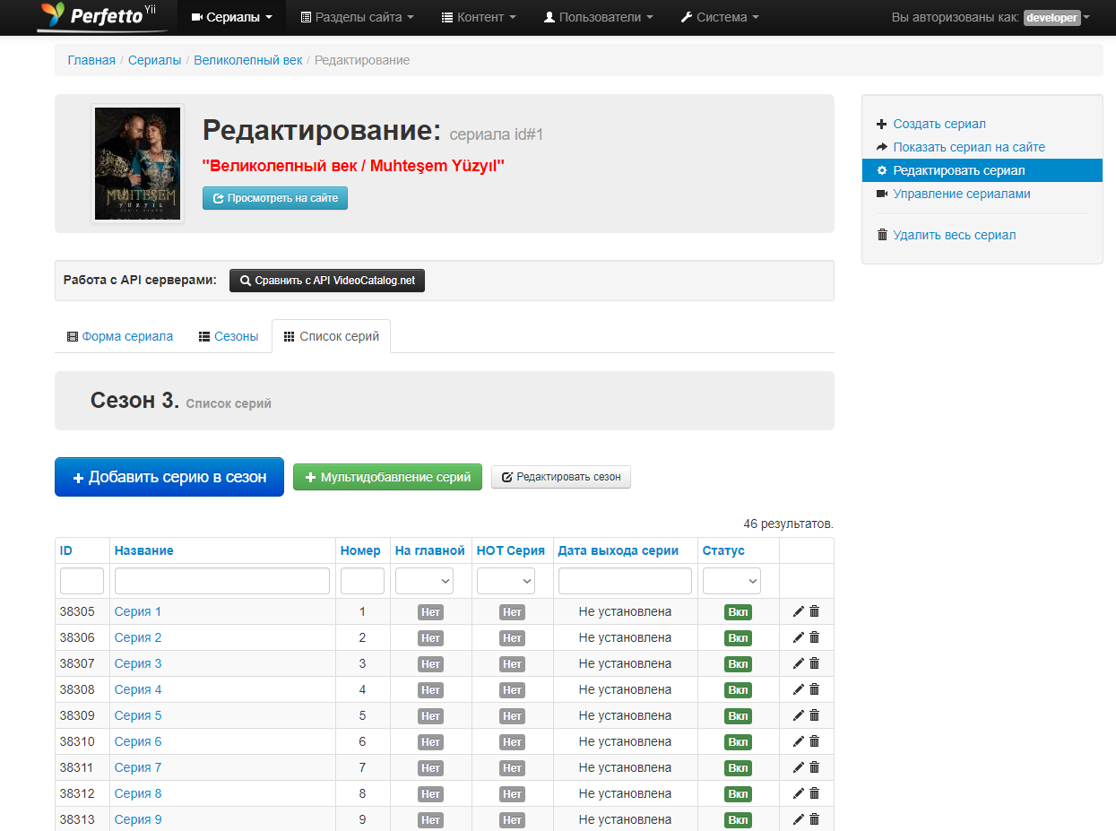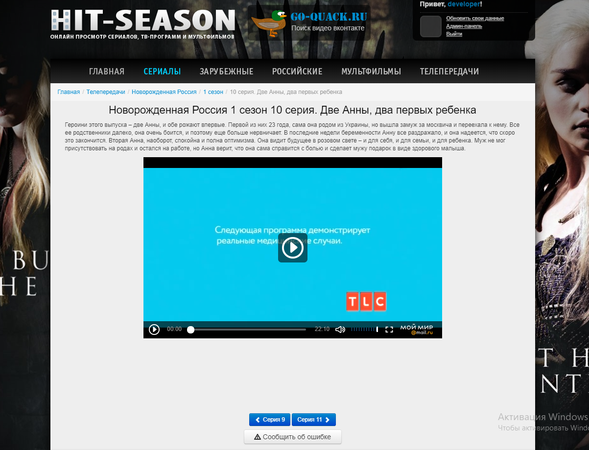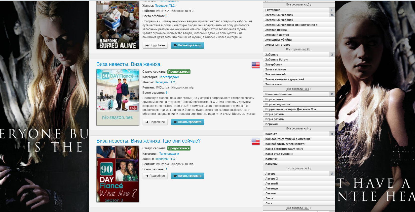 Тематика сайта: зарубежные и российский сериалы, тв-передачи и мультфильмы. Каждая серия сезона размещена на отдельной странице, что даёт бОльший простор для монетизации ;)