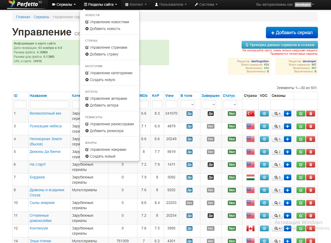 Дополнительная информация:Основной контент - видеофайлы. Текстовый контент присутствует в новостях, в описаниях сериалов, кое-где в описании сезонов и серий. В основном все генерируется системой.