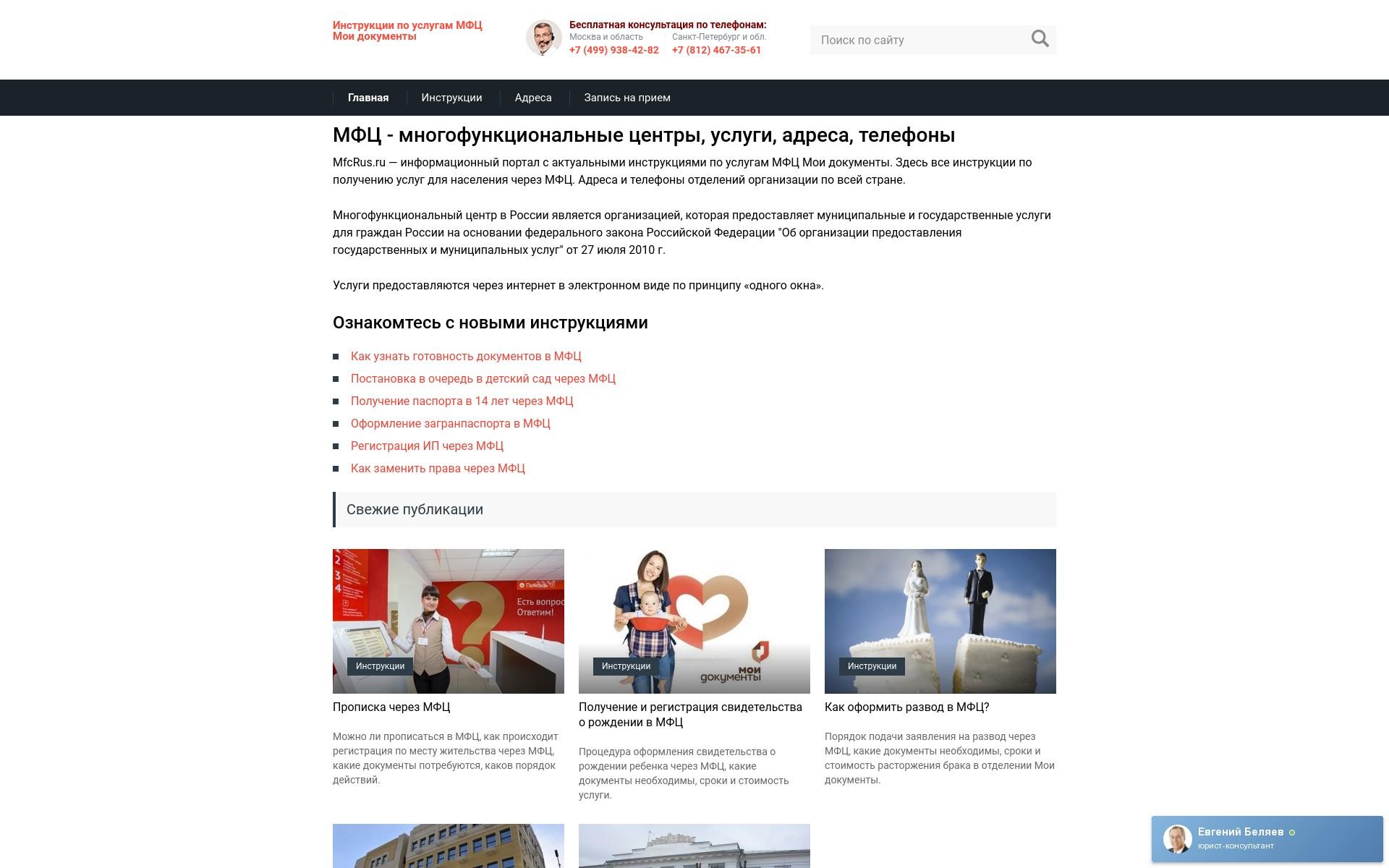 Сайт - каталог мфц РФ, поэтому весь контент неуникальный.