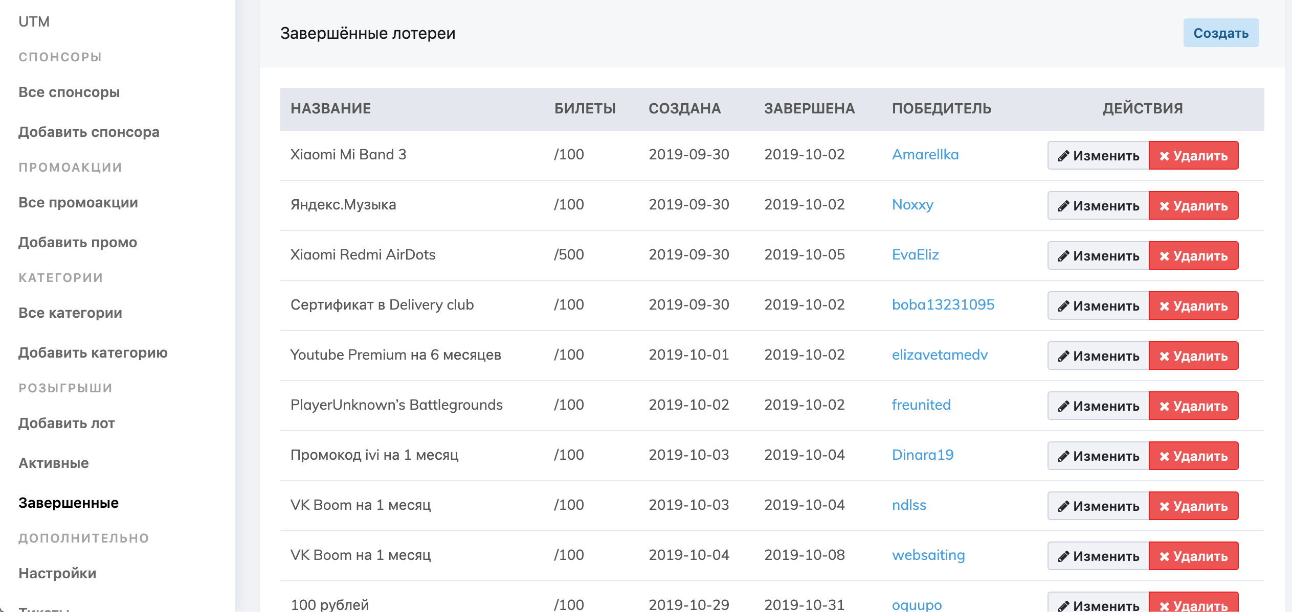 Продается готовый сервис бесплатных розыгрышей, который был запущен совсем недавно!
