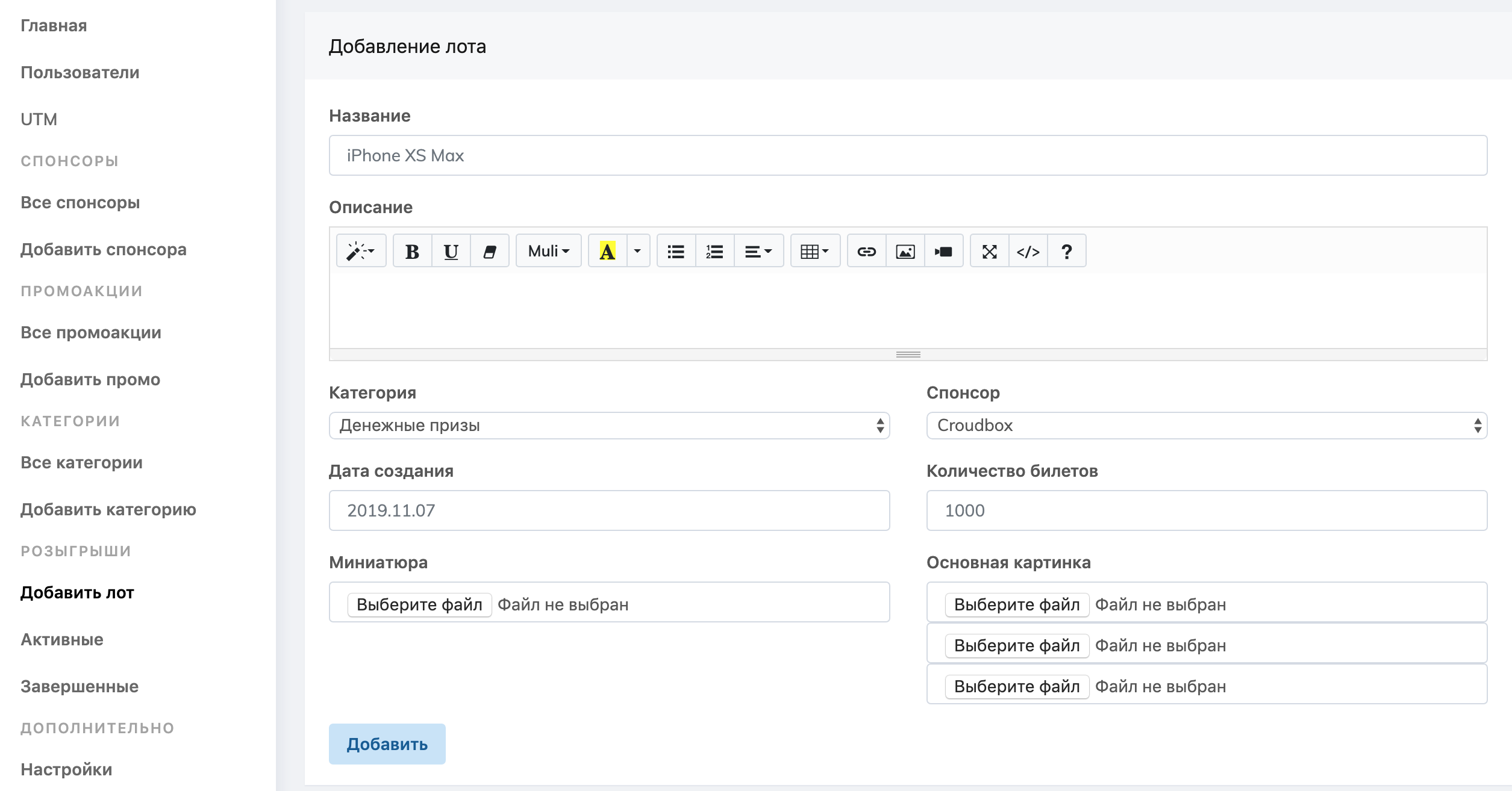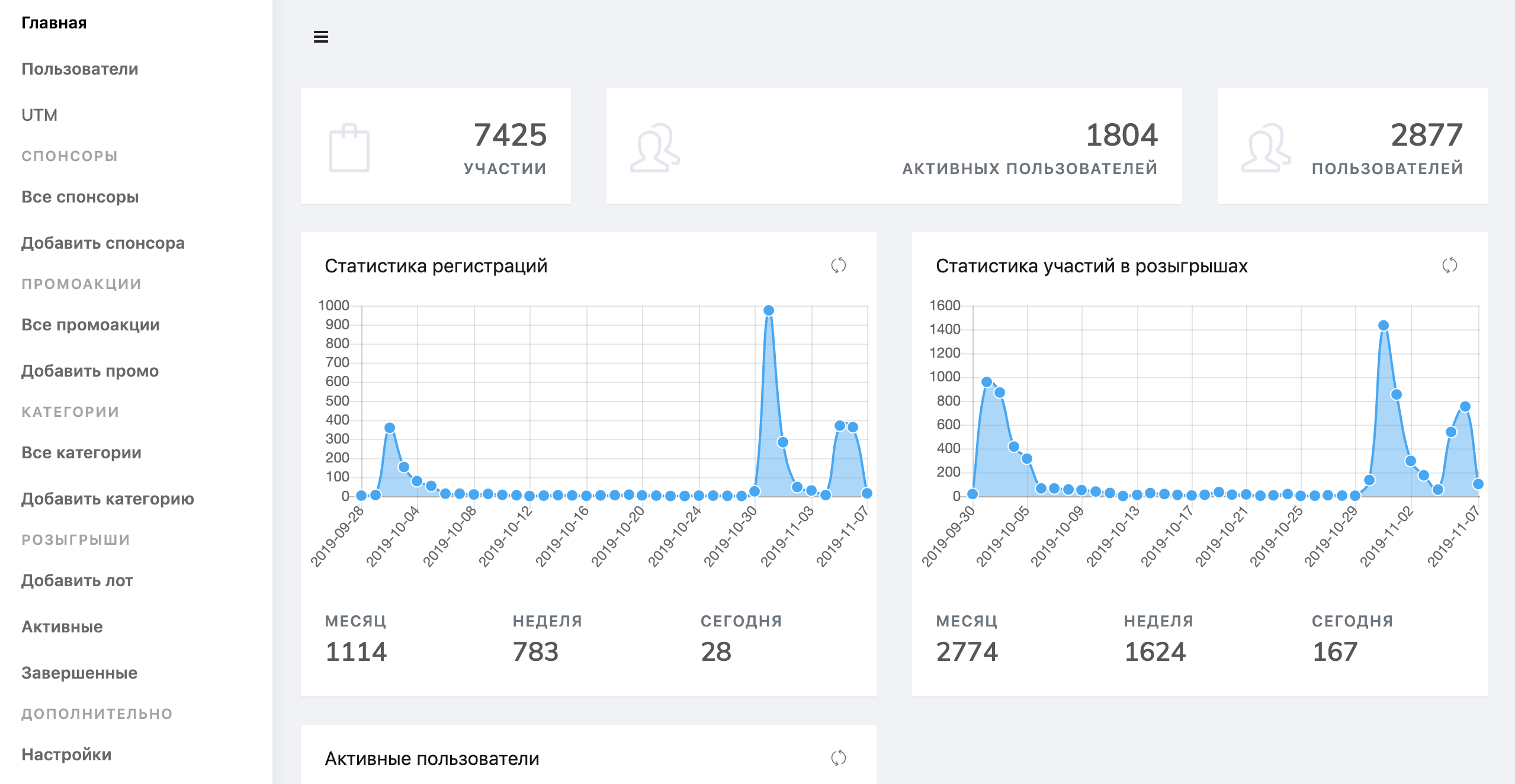 Прикрепил немного админ-панели скриншотами, все максимально удобно и просто для работы.