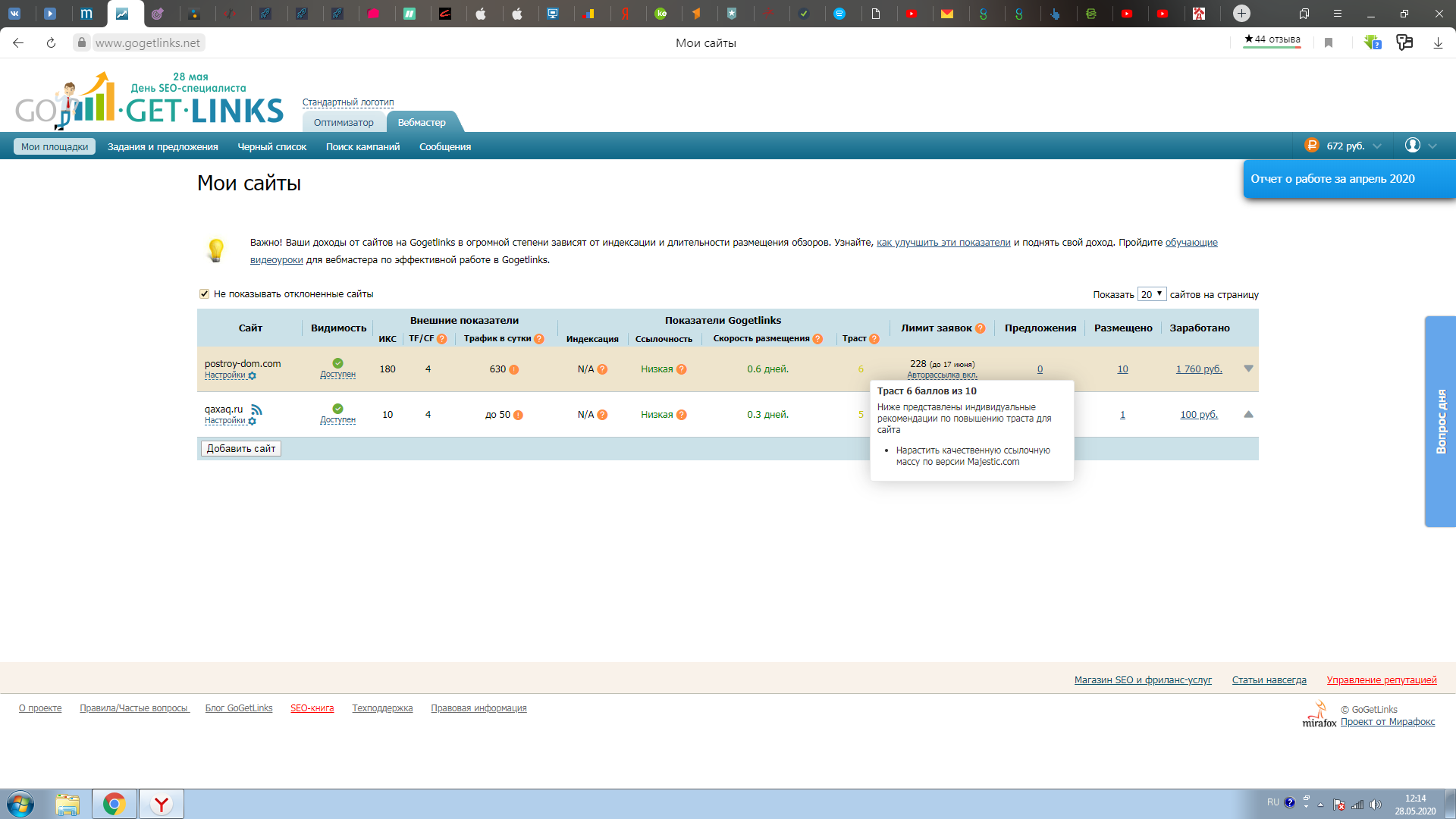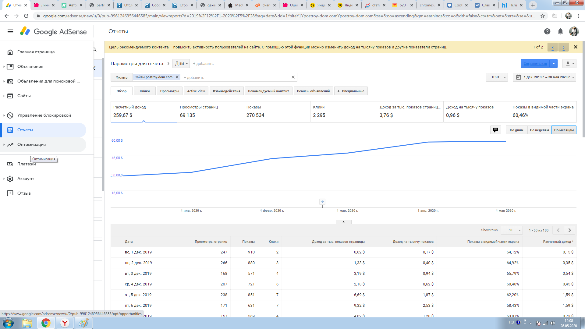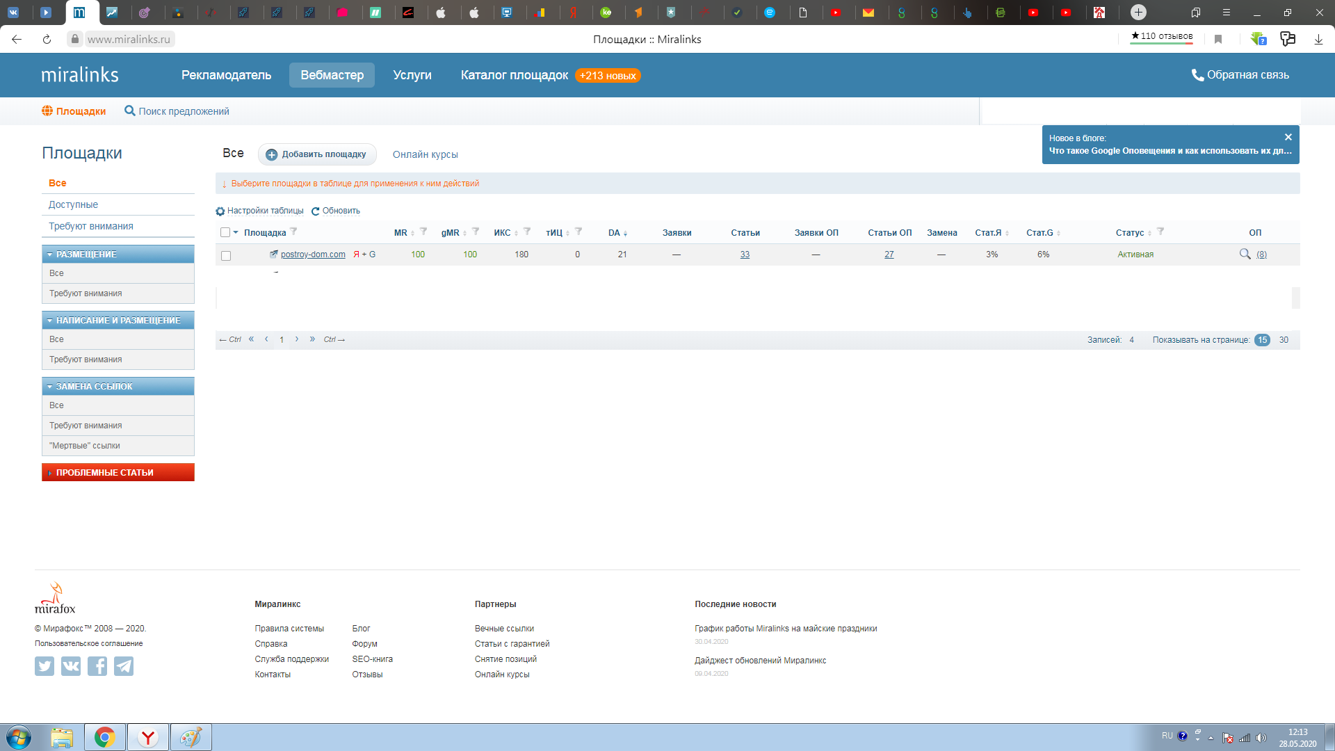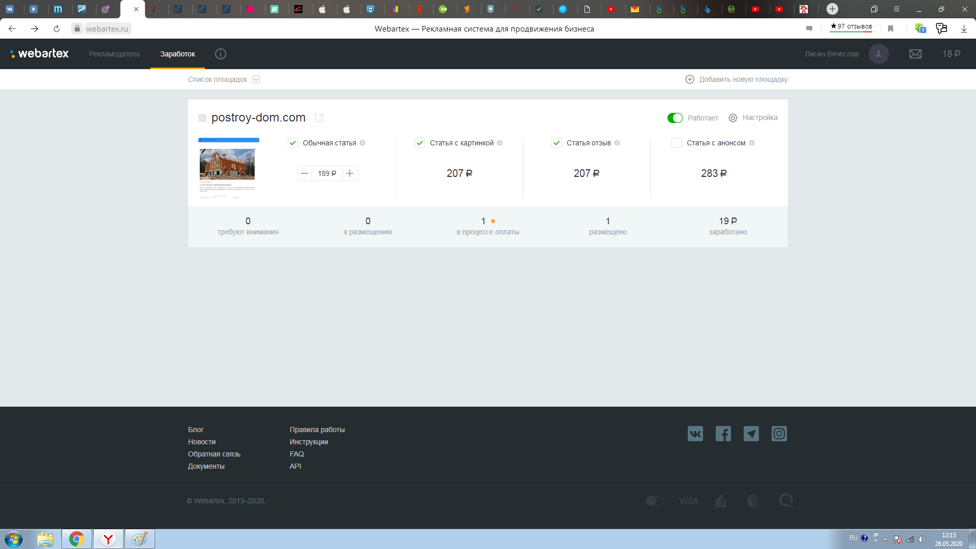 Сайт принят в Гугл Адсенс и РСЯ. Стоимость клика иногда бывает 65 рублей.