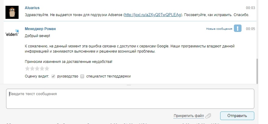 Я, честно говоря, не очень понял, почему теперь проблемы с подгрузкой данных из Adsense, а посему прикладываю скриншоты. Также прикладываю скриншот с ответом техподдержки Телдери по этому поводу.