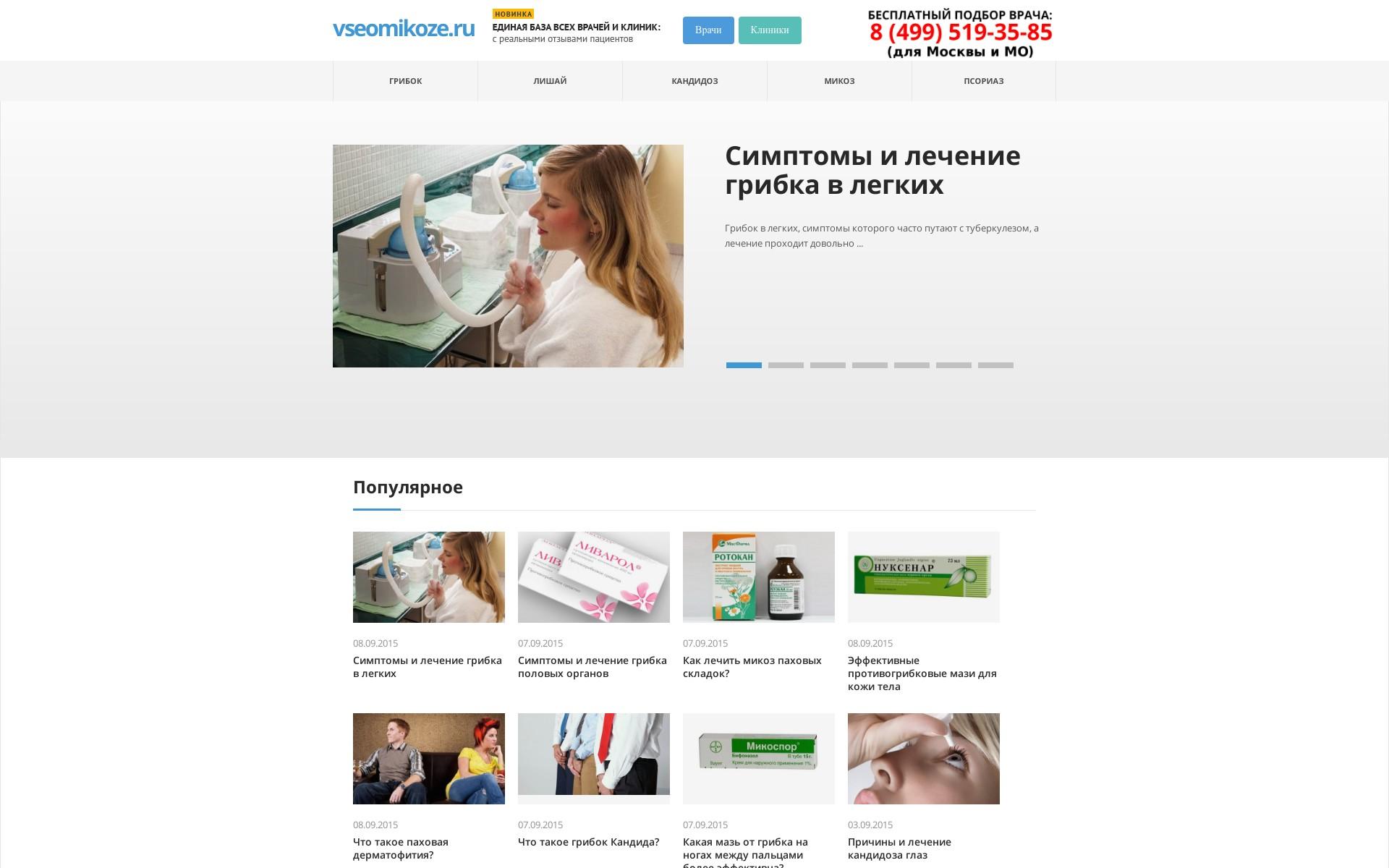 Сайт по тематике "Грибковые заболевания", качественный СДЛ. Отличные ПФ и быстрый шаблон. Сайту 5 лет