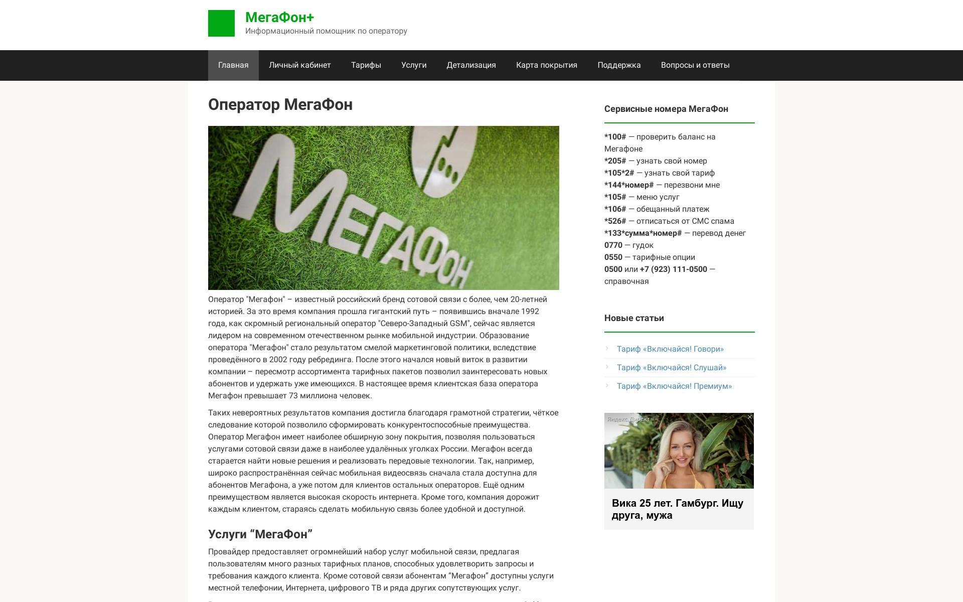Информационный статейник об одном из мобильных операторов России. Хороший трафик, можно увеличить при условии написания контента по актуальной семантике. Мы недавно добавили пару тройку статей, но в целом сайт уже давно не обновлялся ни по семантике, ни по статьям.