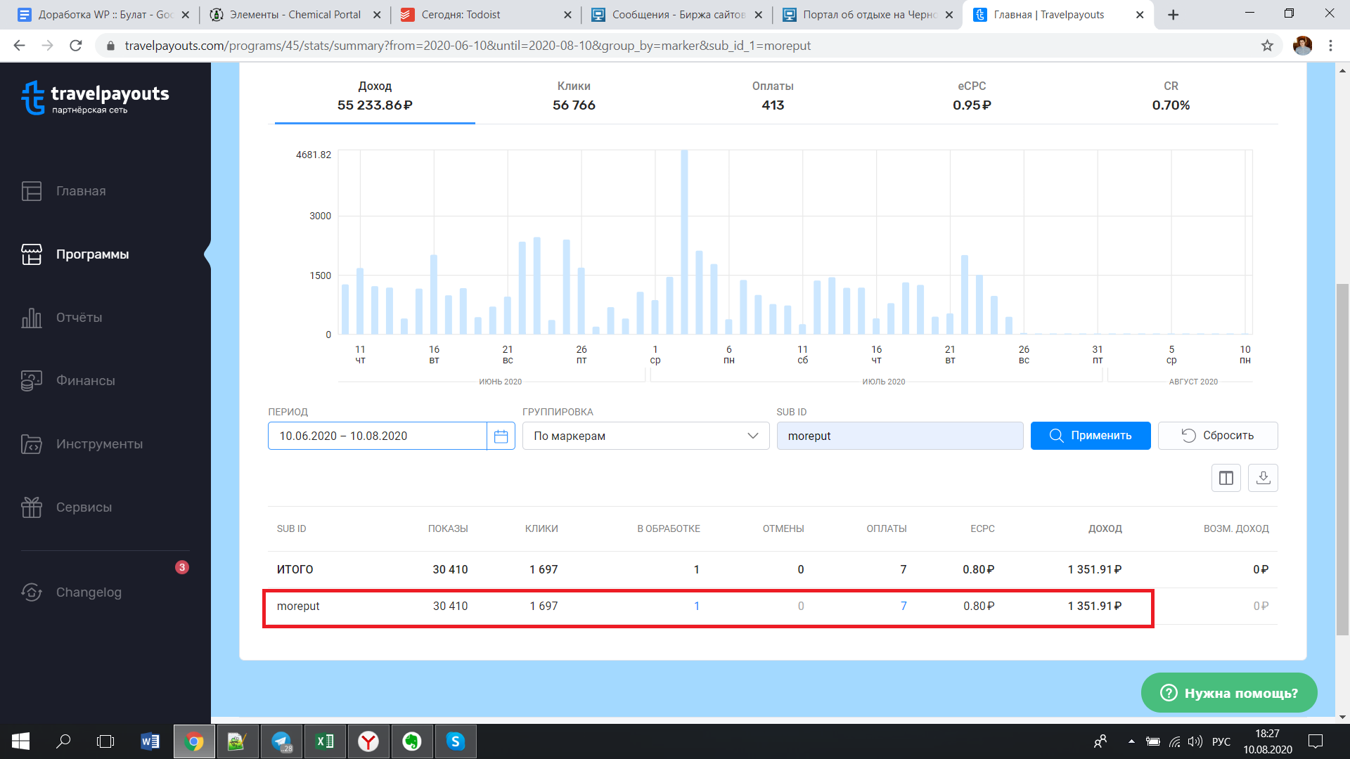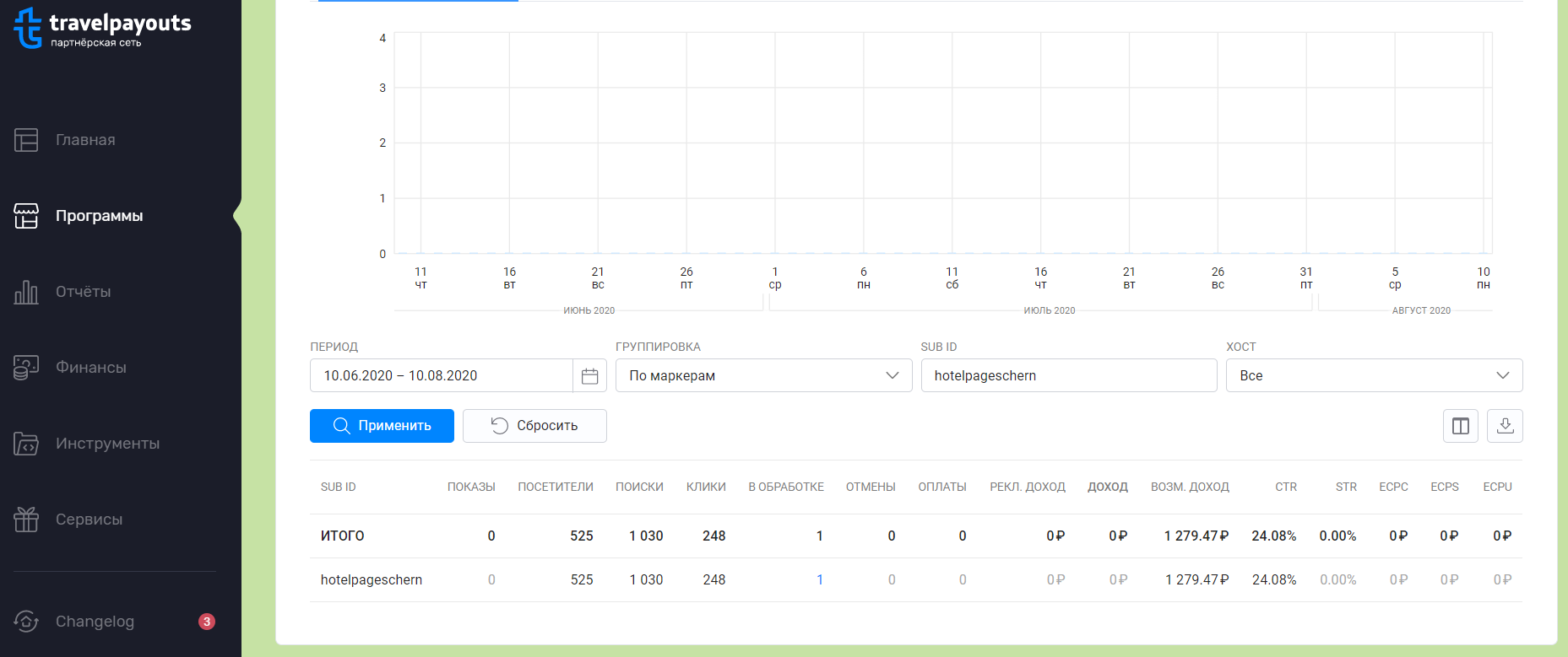 Основной доход от партнерской программы Travelpayouts и систем контекстной рекламы.