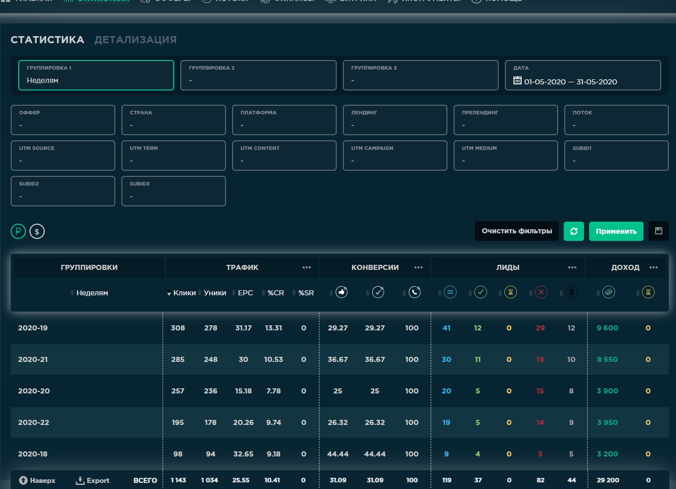 Источники трафика: