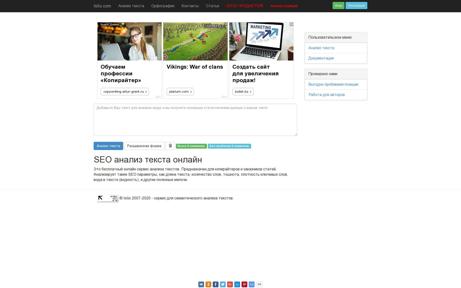Сервис для анализа количества вхождений, воды, тошноты итд. Используют копирайтеры и вебмастеры.